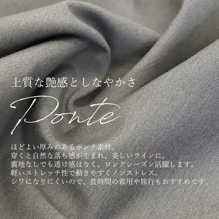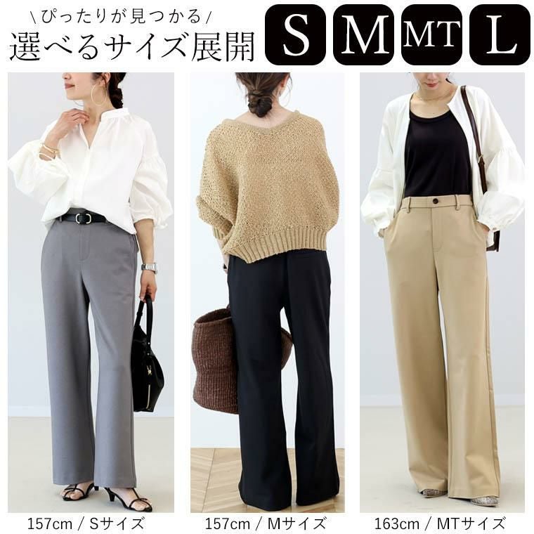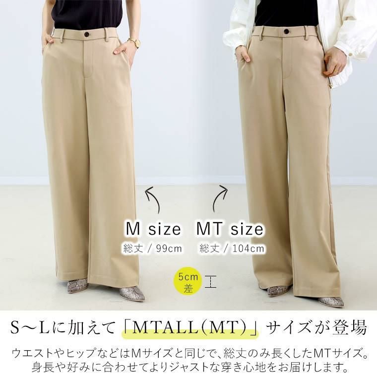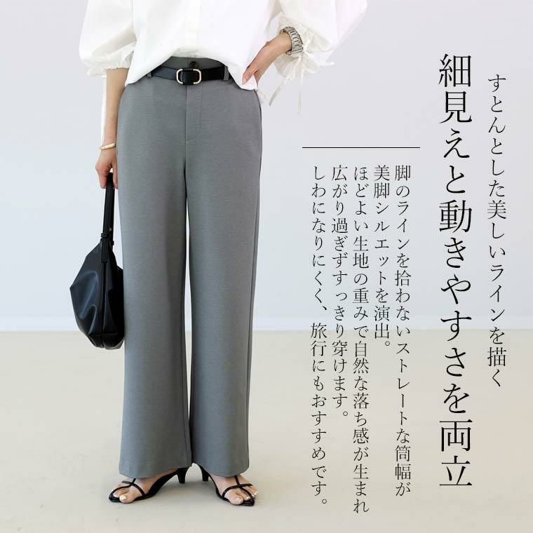 パンツは「きれいめ」と「楽ちん」のバランスが命。美しさにも心地よさにもこだわった、大人の為の理想バランスボトムです。素材には人気のポンチを採用。ほどよい厚みと生地の重みが自然な落ち感を生み、すとんとした綺麗なラインを演出します。軽いストレッチ性と脚のラインを拾わないストレートな筒幅で、細見えと動きやすさを両立しました。S~Lサイズに加え、高身長さんも嬉しいMTALLサイズをご用意。身長や好みに合わせてぴったりサイズが見つかるサイズ展開です。シワになりにくく、長時間の着用や旅行にもおすすめ。大人の日常コーデに役立つ1本です。