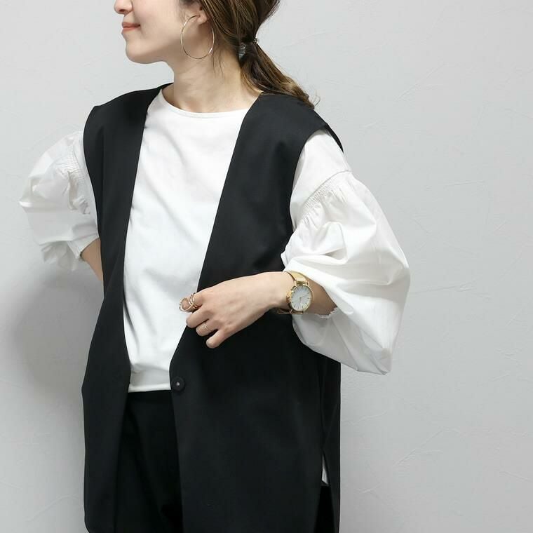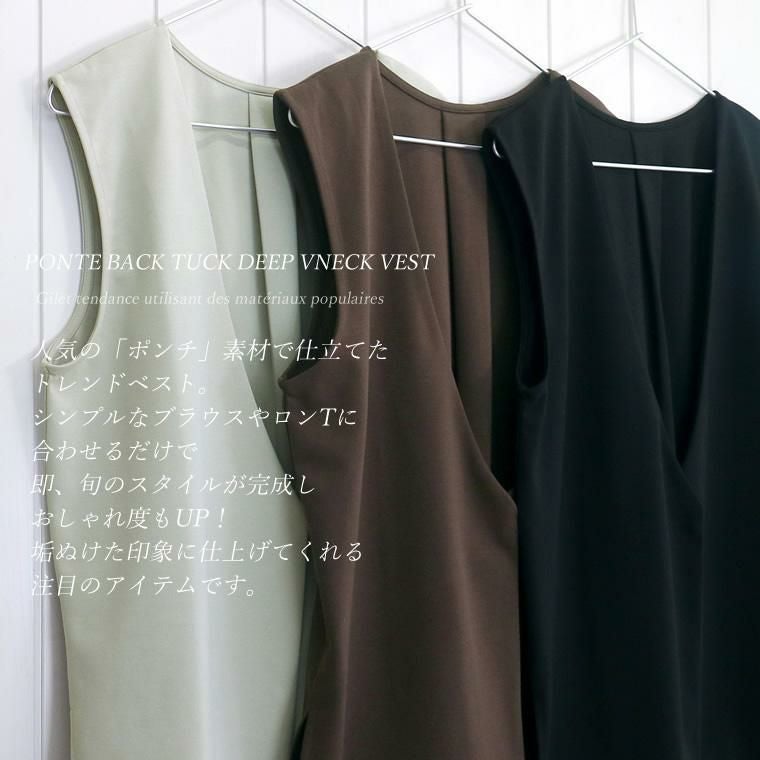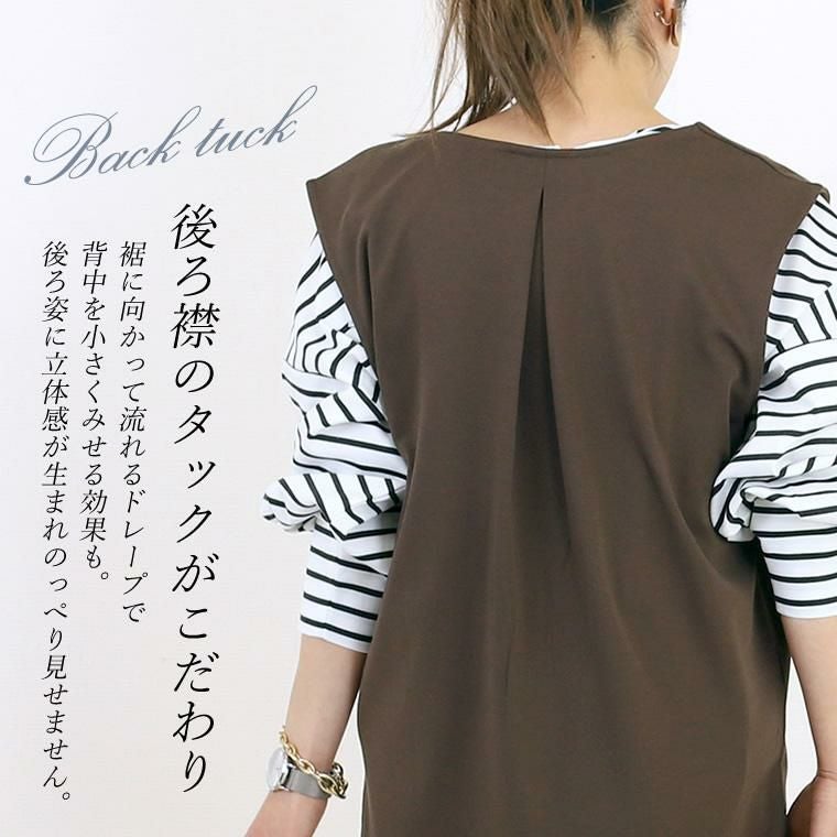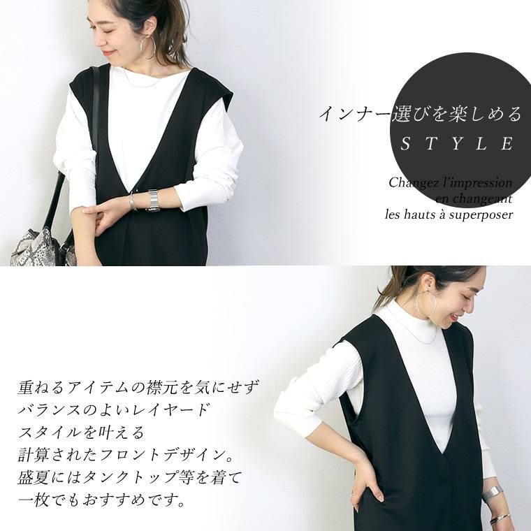ポンチ後ろタック深Vベスト 大人の女性に人気のポンチシリーズから、今季注目ベストの登場です。 インナーとのレイヤードをたっぷり楽しめる深く広げたノーカラーの Vネックシルエットで、洗練された印象に。前を開けても閉じても すっきり着られるコンシールボタン仕様も嬉しいポイントです。 ヒップをすっぽりと覆う着丈は体型カバーにも。さらに、後ろタックの 生むドレープが縦ラインを強調し、スリム見えも期待。 ブラウスやロンT、ハイネックニットなど中に重ねるアイテムを変えて ロングシーズンたっぷり着まわしていただきたいおすすめの一着です。 ※こちらの商品は入荷時期やカラーの違いにより多少の生地の風合いに違いが見られます。 あらかじめご了承くださいますようお願いいたします。 ※濃色についてはお洗濯時の色落ちが見られますので必ず単独手洗いでお願いします。 また、天然素材などには摩擦などで色移りがしやすい場合がございますので着用の際には ご注意いただけますようお願いいたします。 ▼ 着やすくてきちんと感のある人気のポンチシリーズはこちら ▼