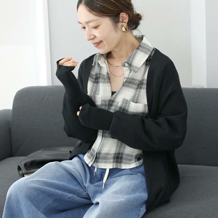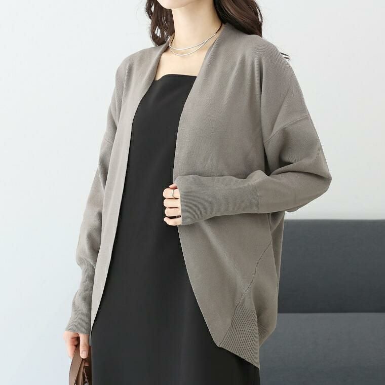 袖リブとコクーンシルエットが着痩せを誘うドルマンカーデ