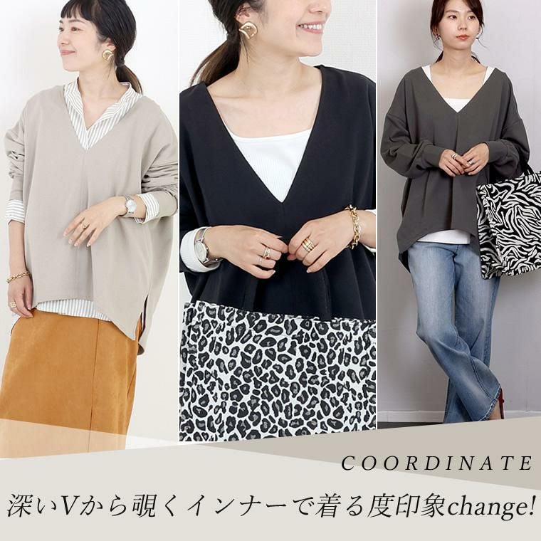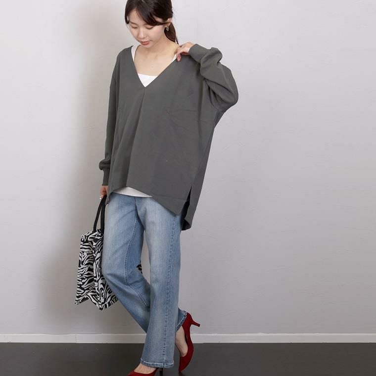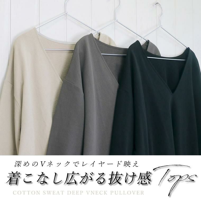 綿スウェット深Vネックプルオーバー インナーを変えるたびに印象も変わる、変幻自在な Vネックスウェット。胸元まで深く開いた襟のデザインが 顔まわりをすっきりシャープにみせ、コーデをたっぷり楽しめます。 生地はやや硬さとハリのあるオリジナルスウェット。カジュアル感の強い アイテムだからこそ目面の美しさや、風合いにこだわり、大人スタイルに 似合う一着に仕上げました。ボディラインをすっぽり包む、後ろ丈長めの コクーンシルエットで体型もカモフラージュ。トレンド不問で長い季節活躍します。 シルエット違いのアイテムもCheck!!
