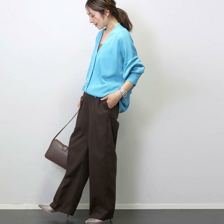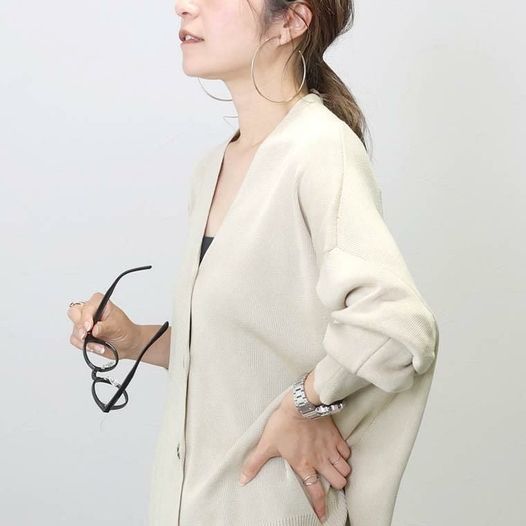 幅広いコーデに着まわせるVネックゆるカーディガン