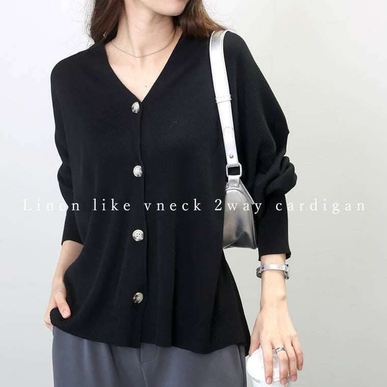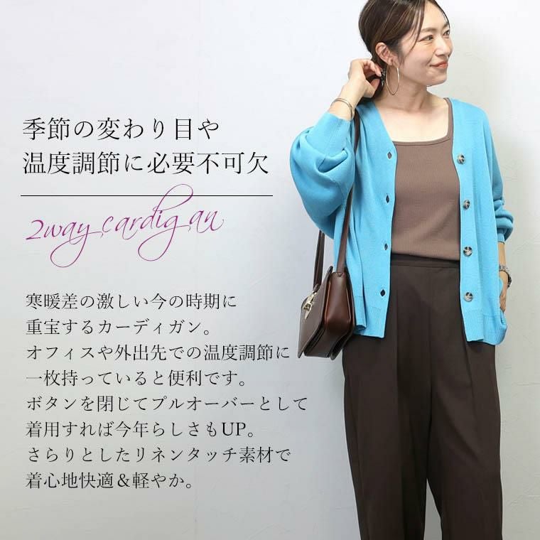 リネンライクVネック2WAYカーディガン 【メール便不可】