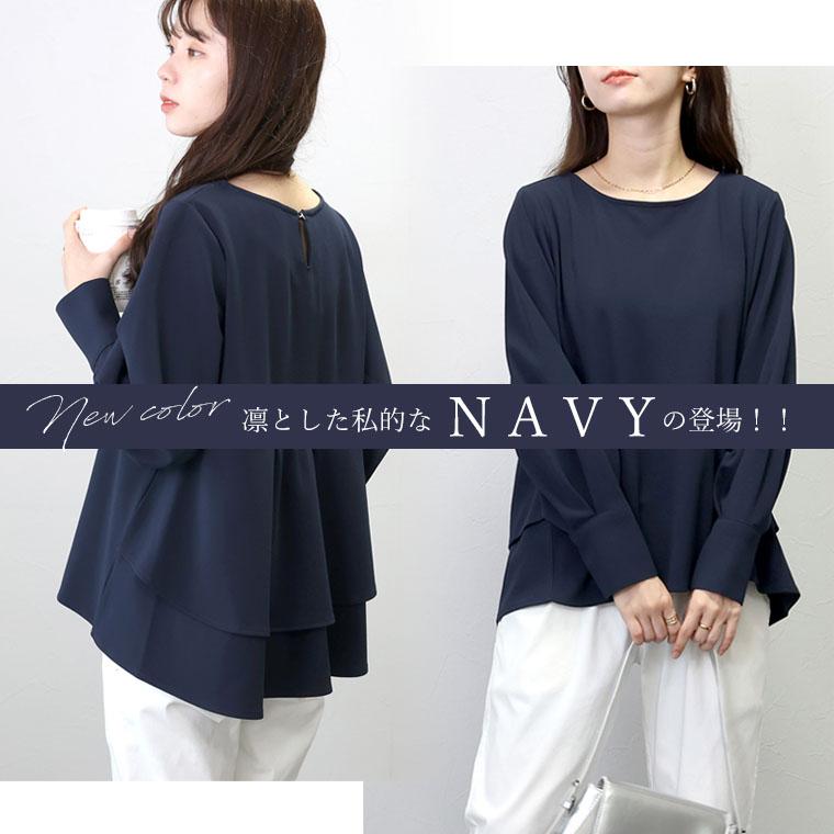 ウエストから下を切替えた、波打つドレープが美しいバックフリルブラウス。中央にギャザーを寄せ、ほどよいボリュームを演出。高い位置でフリルに切り替えることで、華やかさはもちろん、スタイルアップ効果もあります。フェミニンな印象のフリルデザインもソフトな弾力性のあるダブルクロス生地がきちんと見えし、甘さを軽減。大人の女性に似合う一着に仕上がっています。しわになりにくく、手洗いに対応したウォッシャブル素材で毎日のお手入れもイージー。女性らしさ・上品さ・体型カバー全てにこだわった、自慢のオリジナルブラウスです。