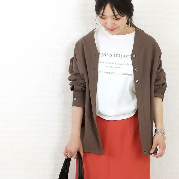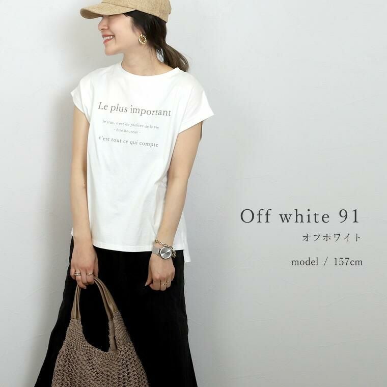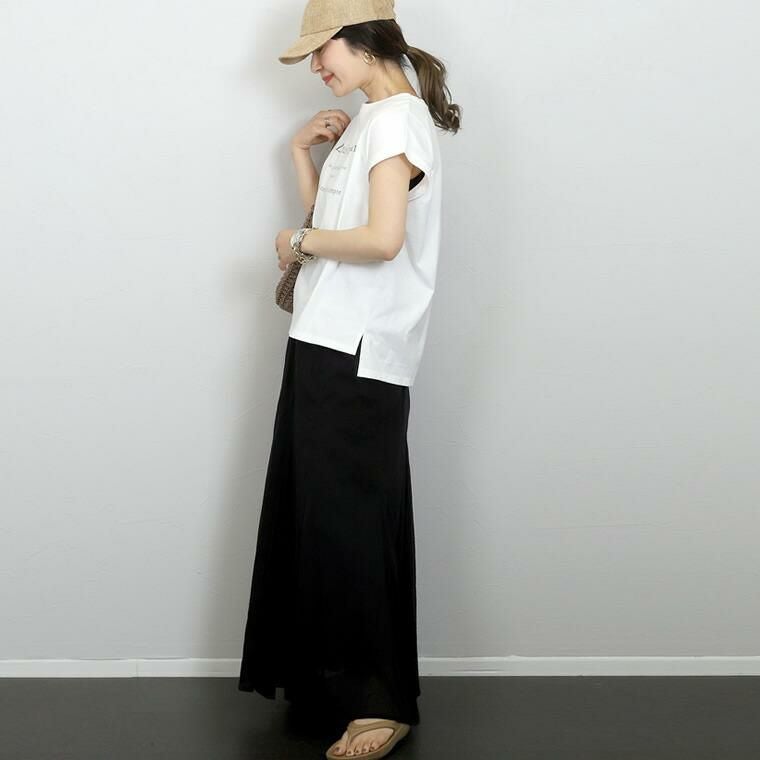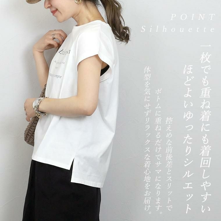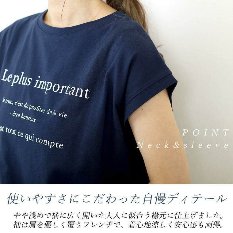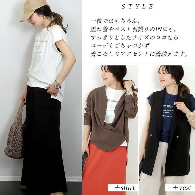 綿天竺ロゴプリントTシャツ シンプルながら女性らしいアクセントをプラスしてくれる フレンチレタリングのロゴプリントが魅力の一着。大人の女性が トレンドにとらわれず、長く着られるようこだわりました。視覚的にも 優しいカラーとすっきりとしたサイズのロゴが品よく、きれいめカジュアルにも 取り入れやすいデザインに。一枚ではもちろん、羽織りや重ね着のINに合わせた時も 子供っぽくならずバランスよく着られます。素材はやわらかな綿天竺で 着心地も抜群。風抜けもよいやや緩めのシルエットで真夏にむけて 役立つこと間違いなし。大人のデイリーユースに活躍するおすすめの一着です。
