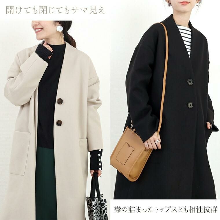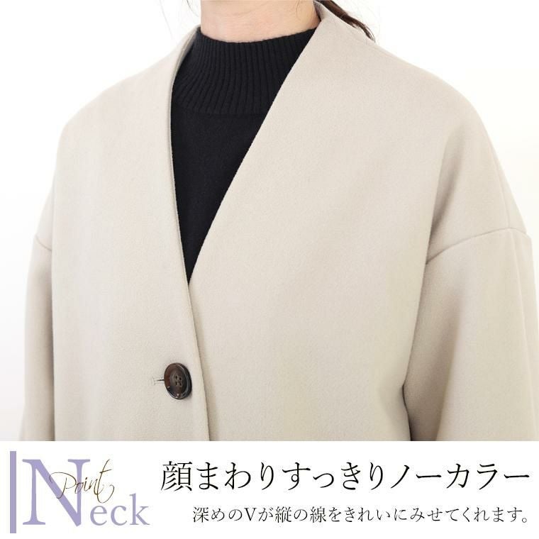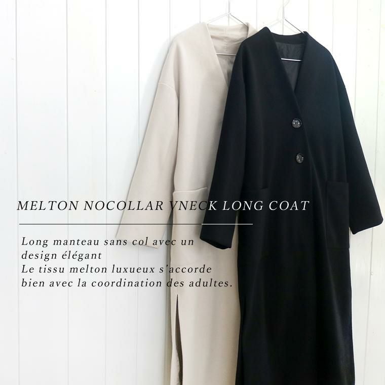 メルトンノーカラーVネックロングコート 【メール便不可】