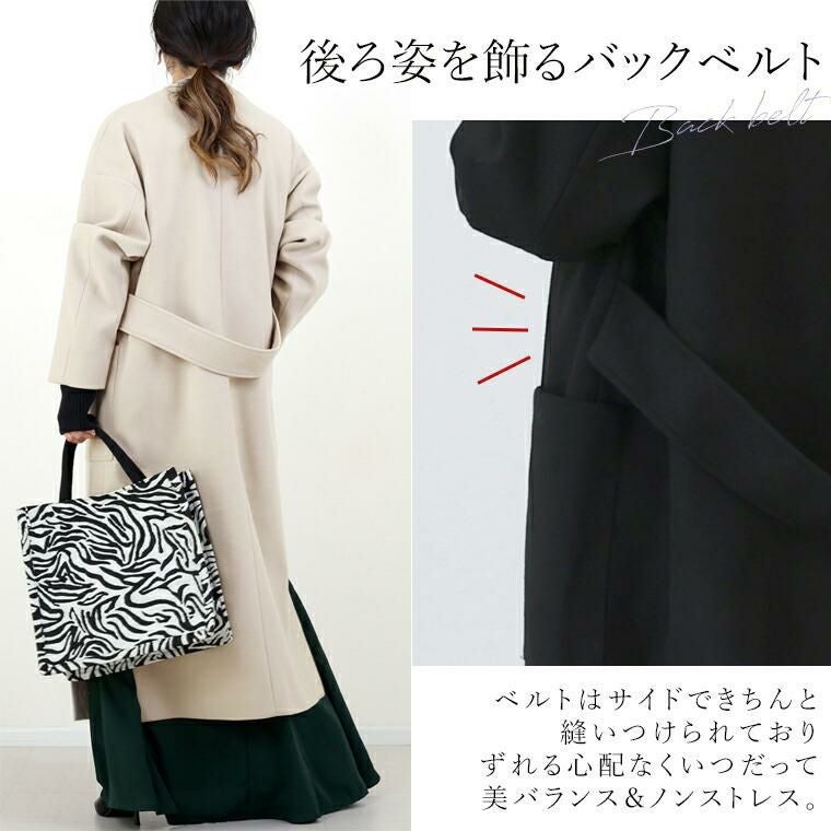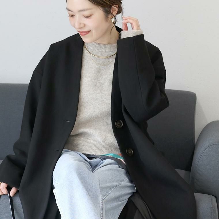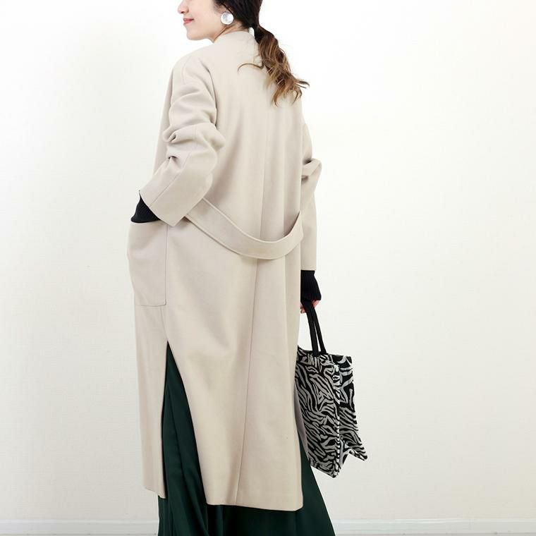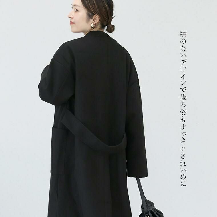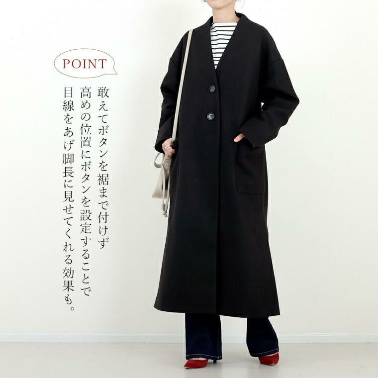 【洗練された上品さが際立つ大人の為のノーカラーロングコート】
