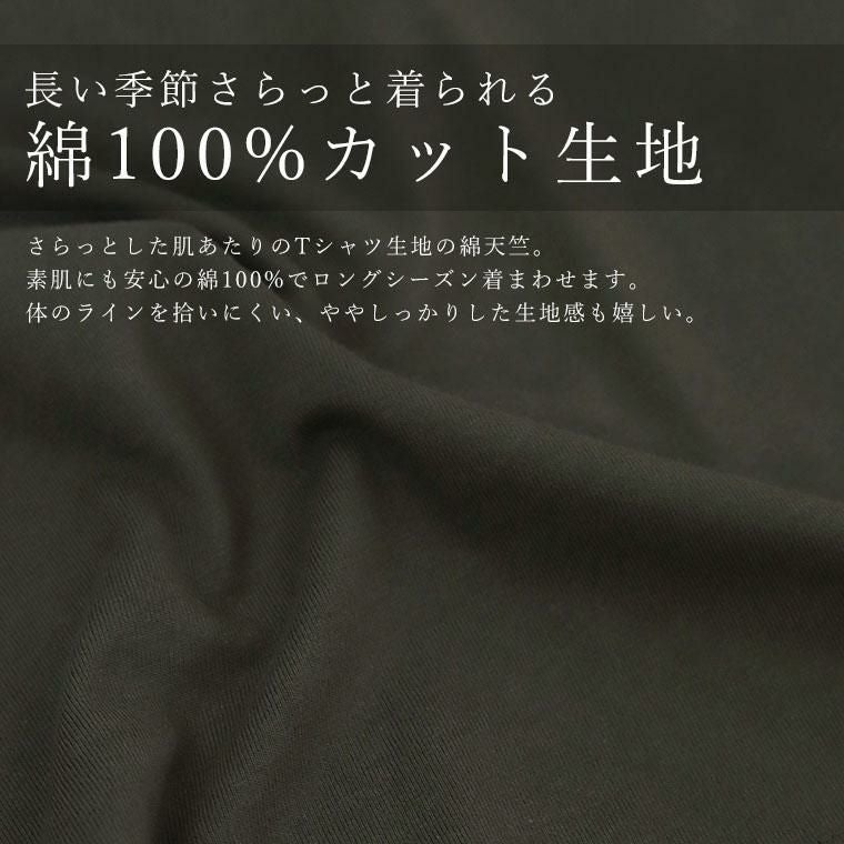 着丈はヒップがすっぽり隠れるくらい。袖丈は手首から4cm下。体にはフィットせず窮屈さを感じません。薄手なので秋から春まで使えそうです。後ろ丈が長くヒップを隠してくれるので安心です。