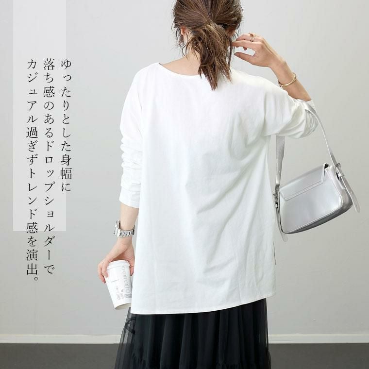 プルオーバー カットソー トップス カット フロッキープリント ロゴ 長袖 ボートネック プリントドロップショルダー 着やすい デコルテ シンプル キレイ見え きれいめ キレイめ 綺麗め 上品 楽ちん イージー イージー素材 ルーズ ゆるめ PO ゆったり タック ドレープ リラックス おしゃれ お洒落 体型カモフラージュ 大人め ブラック クロ 黒 黒色 ブルーグレー 白 オフホワイト ホワイト カラバリ豊富 大きめ 大きい ワンマイルウエア ワンマイルウェア レディースファッション 無地 ラクチン らくちん 楽ちん 動きやすい プラスサイズ 着痩せ 華奢見え 脚長 脚長効果 ゆったりサイズ ゆる すっきり カバー 体型カバー きちんと シンプル カジュアル ナチュラル ベーシック オフィス オフィスカジュアル テレワーク リモートワーク リモート 会議 食事会 ランチ 女友達 参観日 二次会 飲み会 上品 知的 女性らしい 女らしい 着映え オンライン飲み会 着回し 大人 大人カジュアル オトナ 女性 綺麗 きれい キレイ キレイめ 高見え 上質 上品 大きめ 大きい 大きいサイズ 体型カバー 華奢見え 着痩せ 細見え 着回し 大人 大人カジュアル オトナ 女性 綺麗 女性 女性服 アースカラー フリーサイズ レディースファッション ラクチン 楽 らくちん 楽ちん ノンストレス 動きやすい プラスサイズ 着回し プラスサイズ ゆったり ゆったりサイズ ゆる すっきり シンプル 無地 きれい キレイ きれいめ キレイめ 高見え 上質 高級感 母の日 プレゼント ギフト 贈り物 S M L LL 2L XL 20代 30代 40代 50代 おしゃれ パ―ト バイト 仕事 仕事用 ユニフォーム 春夏 春 夏 秋冬 秋 冬 お洒落 オシャレ かわいい 可愛い カワイイ かっこいい カッコいい FUNNY COMPANY ファニーカンパニー ふぁにーかんぱにー ファニカン