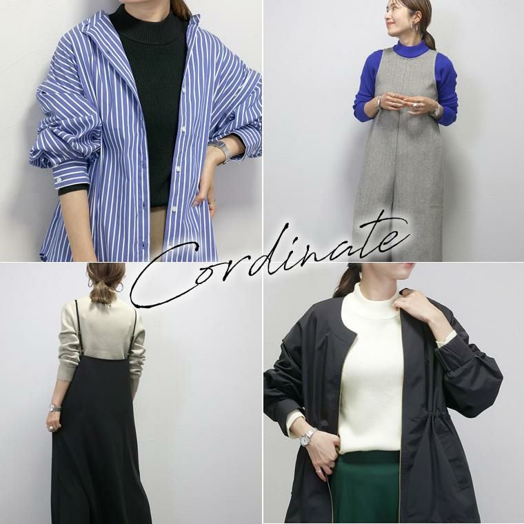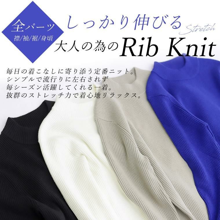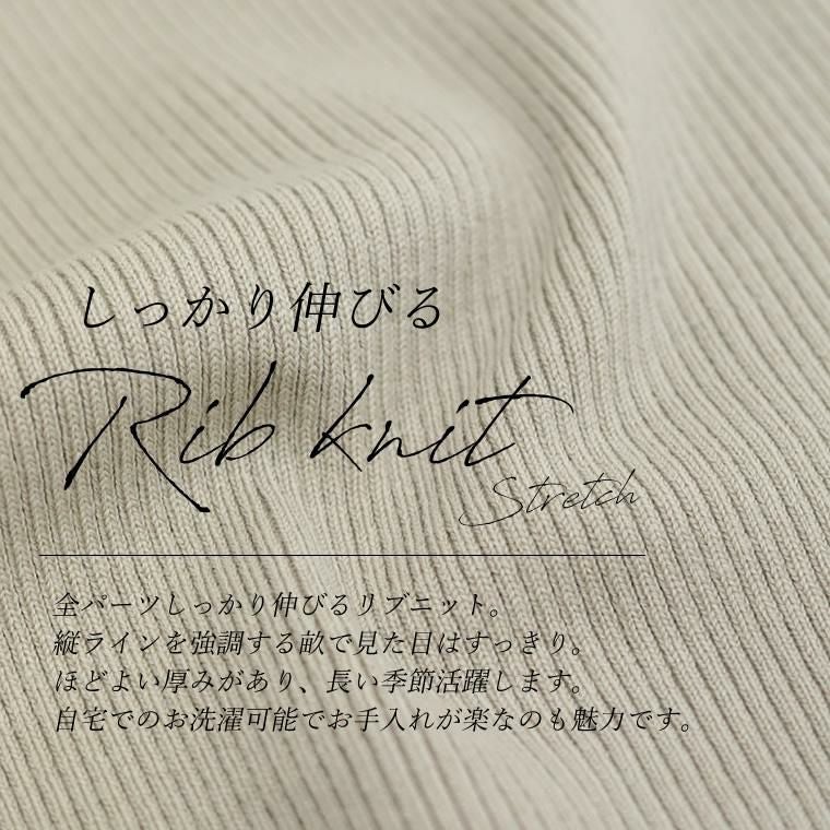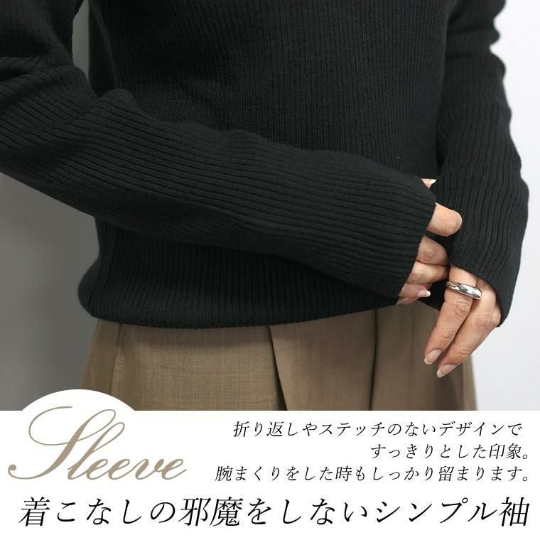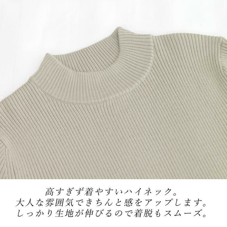 ハイネックリブ編みニットプルオーバー 襟、袖、裾、身頃のすべてのパーツがしっかり伸びる、 大人の毎日の着こなしに寄り添う定番のリブニットです。ほどよい厚みと 縦ラインを強調する畝で、フィット感がありながらも比較的体のラインを 拾いづらいのが嬉しい。一枚ではもちろん、サロペットやワンピース、ベストの インなどレイヤードスタイルにしっかり役立ちます。襟元はきちんと見えする ハイネック。ストレッチが効いているので、着脱時もノンストレス。 着回し力抜群なベーシックシルエットに、長めの着丈で安心感もあります。 一着持っていると必ず役立つ、大人スタイルの基本ニット。
