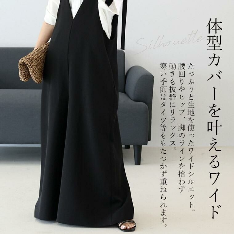 サロペット オーバーオール オールインワン Vネック 深V 両V 前後 2way ドレープ 着丈調節 ロングベルト ショルダーベルト ストラップ トップス ボトムス キレイ見え きれいめ キレイめ 綺麗め 上品 楽ちん イージー イージー素材 ルーズ ゆるめ ワイド ロング ストレスフリー ロング丈 ジョーゼット 艶 きちんと感 通年 ポケット ブラック クロ 黒 黒色 モカブラウン カラバリ豊富 大きめ 大きい ワンマイルウエア ワンマイルウェア レディースファッション 無地 ラクチン らくちん 楽ちん 動きやすい プラスサイズ 着痩せ 華奢見え 脚長 脚長効果 ゆったりサイズ ゆる すっきり カバー 体型カバー きちんと シンプル カジュアル ナチュラル ベーシック オフィス オフィスカジュアル テレワーク リモートワーク リモート 会議 食事会 ランチ 女友達 参観日 二次会 飲み会 上品 知的 女性らしい 女らしい 着映え オンライン飲み会 着回し 大人 大人カジュアル オトナ 女性 綺麗 きれい キレイ キレイめ 高見え 上質 上品 大きめ 大きい 大きいサイズ 体型カバー 華奢見え 着痩せ 細見え 着回し 大人 大人カジュアル オトナ 女性 綺麗 女性 女性服 アースカラー フリーサイズ レディースファッション ラクチン 楽 らくちん 楽ちん ノンストレス 動きやすい プラスサイズ 着回し プラスサイズ ゆったり ゆったりサイズ ゆる すっきり シンプル 無地 きれい キレイ きれいめ キレイめ 高見え 上質 高級感 母の日 プレゼント ギフト 贈り物 S M L LL 2L XL 20代 30代 40代 50代 おしゃれ パ―ト バイト 仕事 仕事用 ユニフォーム 春夏 春 夏 秋冬 秋 冬 お洒落 オシャレ かわいい 可愛い カワイイ かっこいい カッコいい FUNNY COMPANY ファニーカンパニー ふぁにーかんぱにー ファニカン