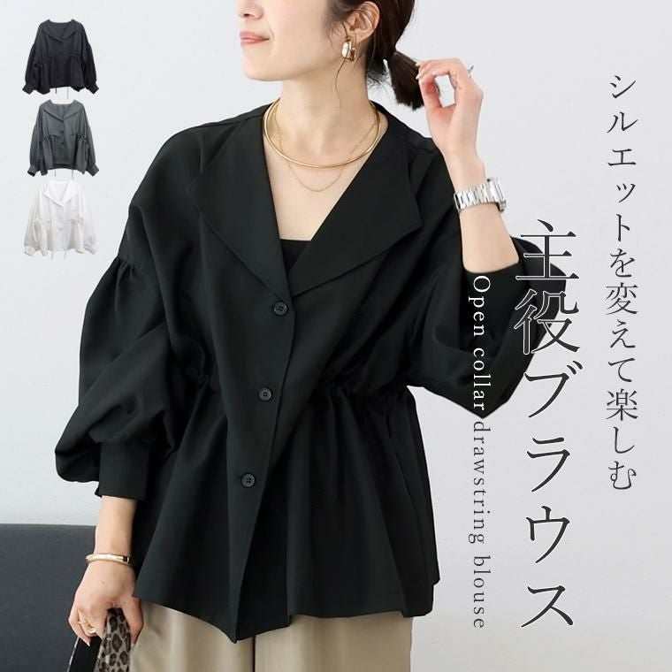 シャツ ブラウス シャツブラウス きちんと感 とろみ 落ち感 イージーケア オープンカラー 無地 襟 Vネック 前開き ボタン 羽織り ワイド ドロスト ドローストリング 調節 シルエット Xライン キレイ見え きれいめ キレイめ 綺麗め 上品 楽ちん イージー イージー素材 重ね着 ドルマン ルーズ ゆるめ 抜け感 ギャザー ドロップショルダー ボリューム袖 袖ボリューム ボリュームスリーブ シャーリング ドレープ ギャザー ストレスフリー ヒップが隠れる ラインカバー 体型カバー ブラック 黒 くろ ぶらっく チャコール 灰色 グレー オフホワイト ホワイト しろ 白 綺麗色 きれい色 差し色 アクセント ベーシック 人気 定番 カラバリ豊富 大きめ 大きい ワンマイルウエア ワンマイルウェア レディースファッション 無地 ラクチン らくちん 楽ちん 動きやすい プラスサイズ 着痩せ 華奢見え 脚長 脚長効果 ゆったりサイズ ゆる すっきり カバー 体型カバー きちんと シンプル カジュアル ナチュラル ベーシック オフィス オフィスカジュアル テレワーク 会議 食事会 ランチ 女友達 参観日 二次会 飲み会 上品 知的 女性らしい 女らしい 着映え オンライン飲み会 着回し 大人 大人カジュアル オトナ 女性 綺麗 きれい キレイ キレイめ 高見え 上質 大きいサイズ 細見え 女性服 アースカラー フリーサイズ 楽 ノンストレス 動きやすい ゆったり 高級感 母の日 プレゼント ギフト 贈り物 S M L LL 2L XL 20代 30代 40代 50代 おしゃれ パ―ト バイト 仕事 仕事用 ユニフォーム 春夏 春 夏 秋冬 秋 冬 お洒落 オシャレ かわいい 可愛い カワイイ かっこいい カッコいい FUNNY COMPANY ファニーカンパニー ふぁにーかんぱにー ファニカン