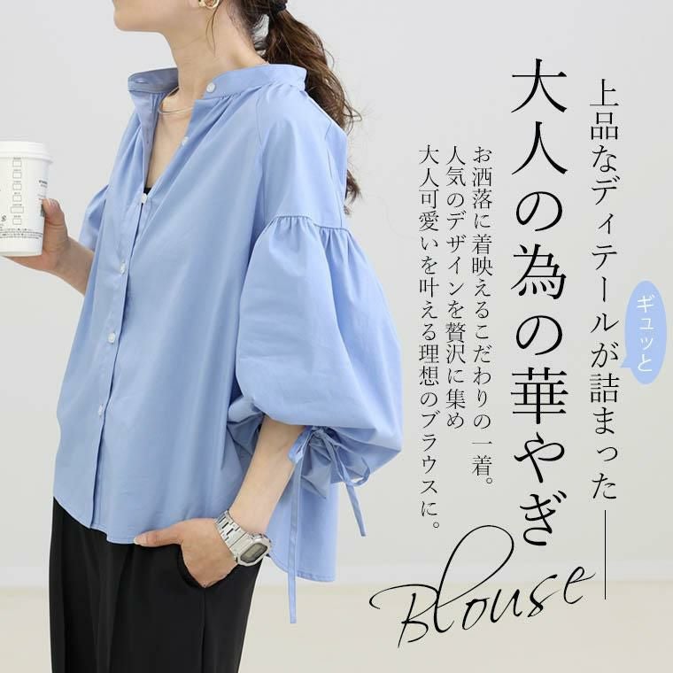 ブラウス シャツ トップス ブロード 7分袖 ボリューム袖 ドロスト 袖リボン ドロップショルダー ラグラン 華奢 着痩せ 着やすい バンドカラー スキッパー 前開き 羽織り デコルテ シンプル ギャザー 立体 キレイ見え きれいめ キレイめ 綺麗め 上品 楽ちん イージー イージー素材 ルーズ ゆるめ ゆったり リラックス おしゃれ お洒落 体型カモフラージュ 大人め ブラック 黒 サックスブルー ブルー 青 オフホワイト ホワイト 白 カラバリ豊富 大きめ 大きい ワンマイルウエア ワンマイルウェア レディースファッション 無地 ラクチン らくちん 楽ちん 動きやすい プラスサイズ 着痩せ 華奢見え 脚長 脚長効果 ゆったりサイズ ゆる すっきり カバー 体型カバー きちんと シンプル カジュアル ナチュラル ベーシック オフィス オフィスカジュアル テレワーク 会議 食事会 ランチ 女友達 参観日 二次会 飲み会 上品 知的 女性らしい 女らしい 着映え オンライン飲み会 着回し 大人 大人カジュアル オトナ 女性 綺麗 きれい キレイ キレイめ 高見え 上質 大きいサイズ 細見え 女性服 アースカラー フリーサイズ 楽 ノンストレス 動きやすい ゆったり 高級感 母の日 プレゼント ギフト 贈り物 S M L LL 2L XL 20代 30代 40代 50代 おしゃれ パ―ト バイト 仕事 仕事用 ユニフォーム 春夏 春 夏 秋冬 秋 冬 お洒落 オシャレ かわいい 可愛い カワイイ かっこいい カッコいい FUNNY COMPANY ファニーカンパニー ふぁにーかんぱにー ファニカン