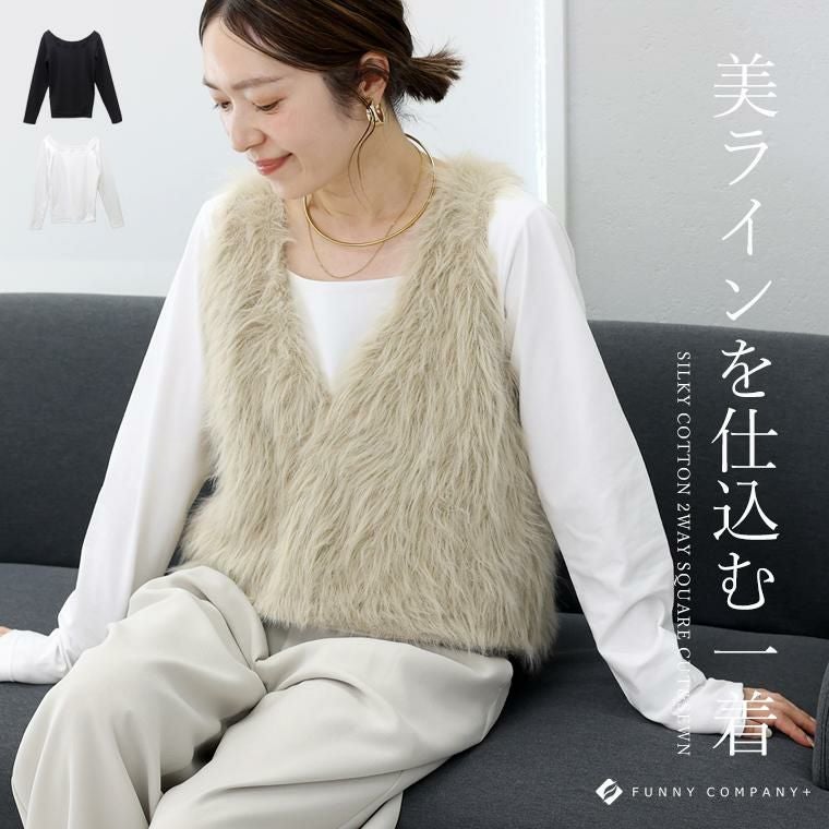 シルキーコットン2WAYスクエアカットソー 【メール便可/ma1.5】