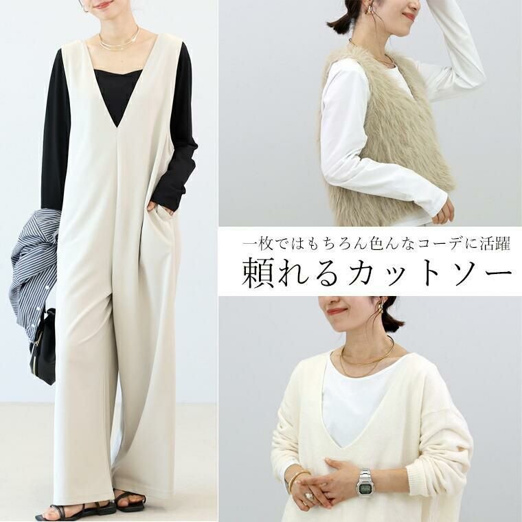 高級感のあるシルケットコットン生地で仕立てた2wayカットソー。きめ細やかな上質素材で、なめらかな肌触りと柔らかな弾力性が魅力。伸縮素材のポリウレタンを織り込むことで良く伸び、長時間の着用でもノンストレスな着心地をお届けします。スクエアとボートネックの2通りの襟元を楽しめる前後2wayデザイン。スクエアネックの胸元は直線的なカッティングで洗練された印象に。ベストやジャケットのインナーにぴったりな設計です。着丈は腰にかかるほどよい着丈でボトムを選びません。カジュアルにもきれいめにもマルチに活躍するワンランク上のカットソーです。