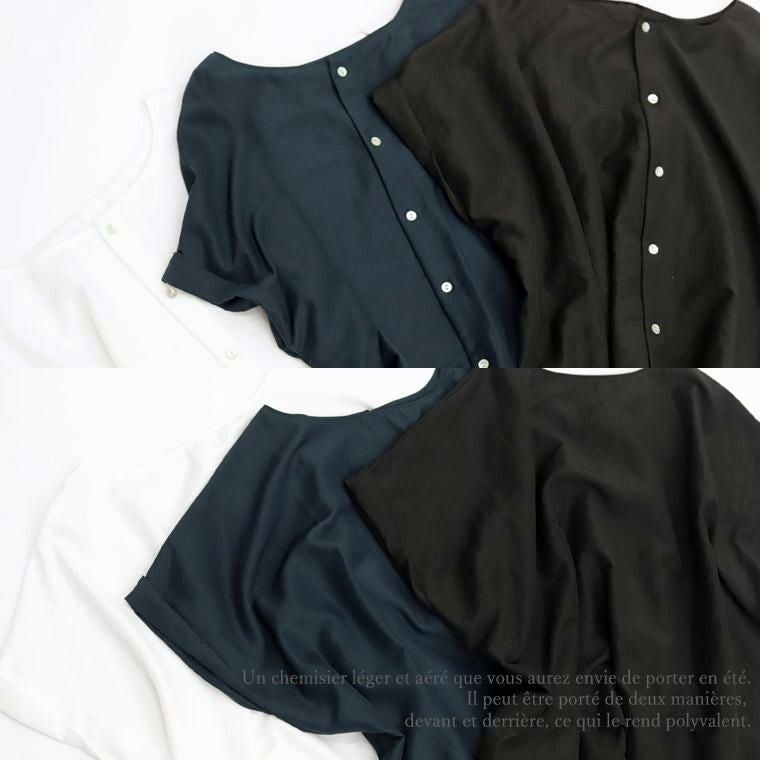 エステルボイル後ろボタン華奢見え2WAYブラウス