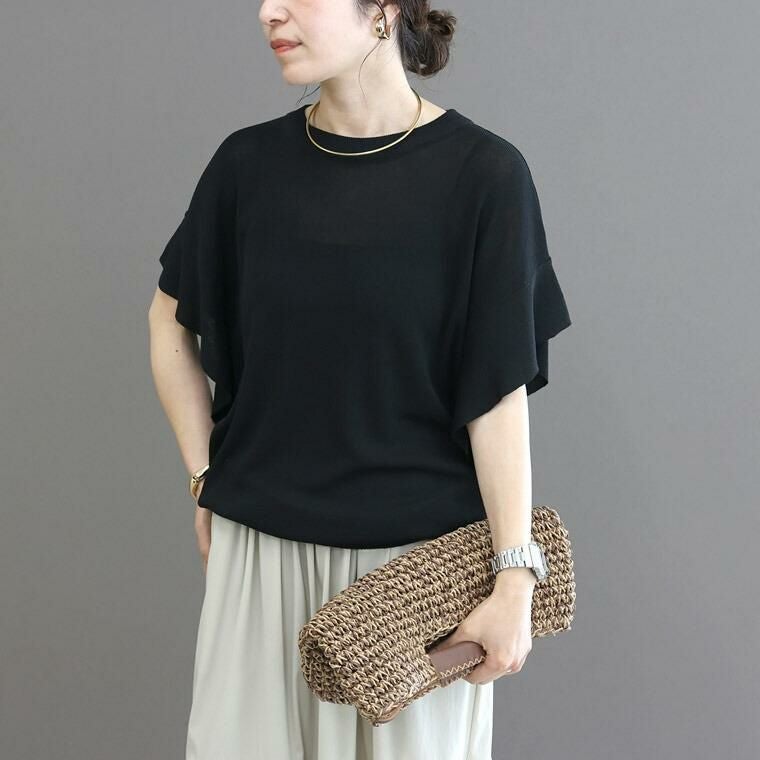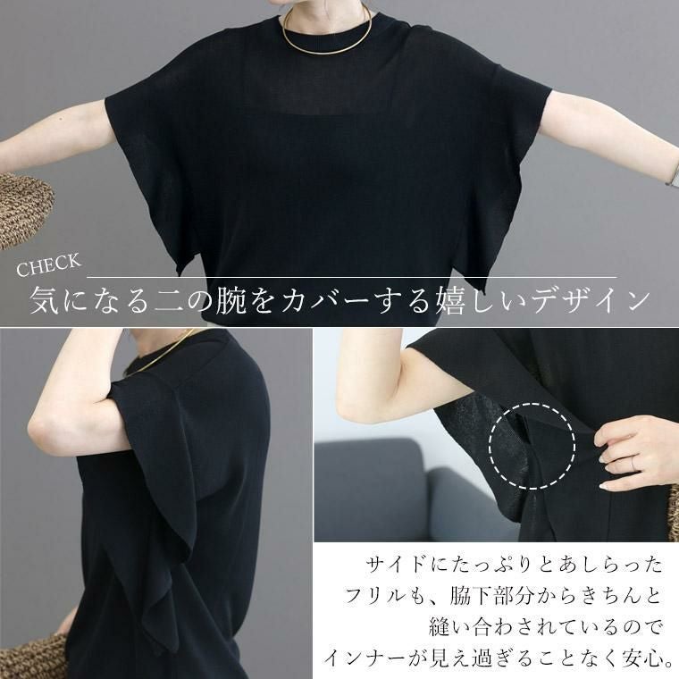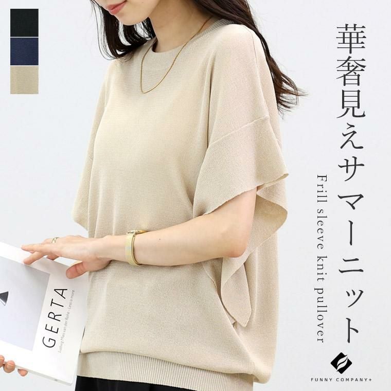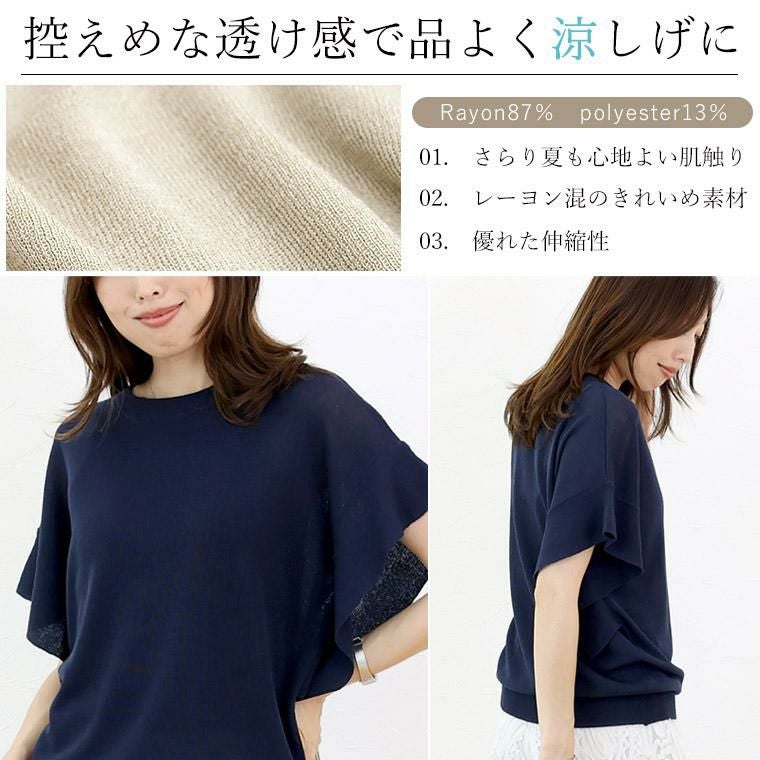 フリルスリーブニットプルオーバー
