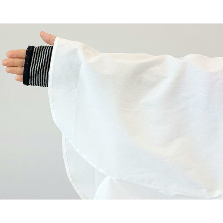着丈はヒップがスッポリ隠れるくらい。袖丈は手首から12cm下。全体的にゆとりがありボタンを閉めても窮屈感はありません。二の腕まわりをカバーしてくれるボリューム袖ですが動作しやすいです。袖口はシッカリしていますがたくし上げる事もできます。