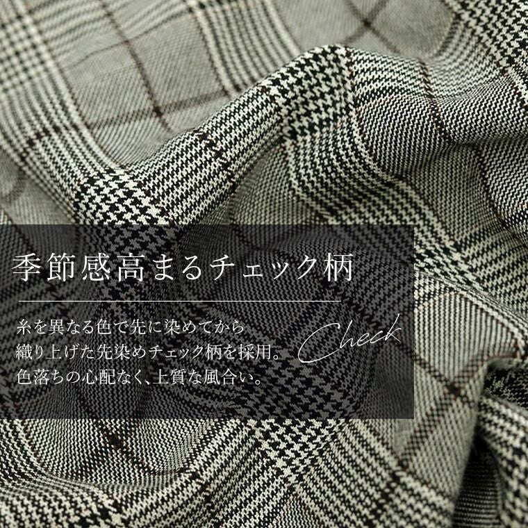 季節感漂う大人のチェックワンピース。きちんと感あるシャツ襟と、優しく広がるフレアシルエットが女性らしさを引き立てる。一枚で華やかにきまるのに、肩の力が抜けた上品さが魅力です。糸を異なる色で先に染めてから織りあげた先染めチェック生地を採用。上質な風合いで、色落ちの心配がないのも嬉しい。透け感もなく、一枚で安心してご着用いただけます。たっぷりと生地を使ったゆとりあるシルエットながら、生地の落ち感で広がり過ぎず着るだけでスタイルアップ。後ろヨークの切替とタックで間延びせず、後ろ姿もすっきり立体的にみせてくれます。羽織りとしても着られる前開きデザイン&共布ベルト付きで色んな着方を楽しめます。大人の女性が求める「上品」「きれいめ」「高見え」が備わった一着です。