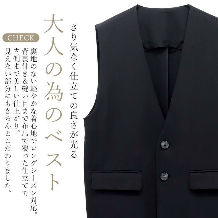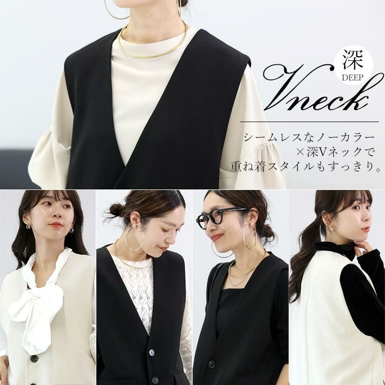 ベスト トップス ジレ ノースリーブ レイヤード 重ね着 華奢 着痩せ 透けない 着やすい Vネック 深V ノーカラー シームレス デコルテ シンプル キレイ見え きれいめ キレイめ 綺麗め 上品 楽ちん イージー イージー素材 エステルジョーゼット ゆるめ ゆったり リラックス おしゃれ お洒落 体型カモフラージュ 大人め ブラック クロ 黒 黒色 ライトベージュ ベージュ カラバリ豊富 大きめ 大きい ワンマイルウエア ワンマイルウェア レディースファッション 無地 ラクチン らくちん 楽ちん 動きやすい プラスサイズ 着痩せ 華奢見え 脚長 脚長効果 ゆったりサイズ ゆる すっきり カバー 体型カバー きちんと シンプル カジュアル ナチュラル ベーシック オフィス オフィスカジュアル テレワーク 会議 食事会 ランチ 女友達 参観日 二次会 飲み会 上品 知的 女性らしい 女らしい 着映え オンライン飲み会 着回し 大人 大人カジュアル オトナ 女性 綺麗 きれい キレイ キレイめ 高見え 上質 大きいサイズ 細見え 女性服 アースカラー フリーサイズ 楽 ノンストレス 動きやすい ゆったり 高級感 母の日 プレゼント ギフト 贈り物 S M L LL 2L XL 20代 30代 40代 50代 おしゃれ パ―ト バイト 仕事 仕事用 ユニフォーム 春夏 春 夏 秋冬 秋 冬 お洒落 オシャレ かわいい 可愛い カワイイ かっこいい カッコいい FUNNY COMPANY ファニーカンパニー ふぁにーかんぱにー ファニカン