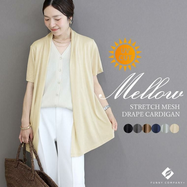 カーディガン カーデ カーデガン かーでがん かーでぃがん 羽織り はおり 羽織 防寒 季節の変わり目 体型カバー UV UV加工 UV対策 日焼け対策 日焼け防止 ひやけたいさく ひやけぼうし ひよけ クーラー対策 冷房対策 温度調節 気温調節 キレイ見え きれいめ キレイめ 綺麗め 上品 楽ちん イージー イージー素材 ルーズ ゆるめ ゆったり 半袖 ハーフスリーブ メロー ドレープ トッパーカーディガン トッパー 薄手 シアー 軽量 ミディアム ロング リラックス おしゃれ お洒落 体型カモフラージュ 大人め ブラック クロ 黒 黒色 杢グレー グレー 灰色 杢ブラウン ブラウン 茶色 茶 ネイビー 紺 ライトグレー ベージュ オフベージュ 差し色 カラバリ豊富 大きめ 大きい ワンマイルウエア ワンマイルウェア レディースファッション 無地 ラクチン らくちん 楽ちん 動きやすい プラスサイズ 着痩せ 華奢見え 脚長 脚長効果 ゆったりサイズ ゆる すっきり カバー 体型カバー きちんと シンプル カジュアル ナチュラル ベーシック オフィス オフィスカジュアル テレワーク 会議 食事会 ランチ 女友達 参観日 二次会 飲み会 上品 知的 女性らしい 女らしい 着映え オンライン飲み会 着回し 大人 大人カジュアル オトナ 女性 綺麗 きれい キレイ キレイめ 高見え 上質 大きいサイズ 細見え 女性服 アースカラー フリーサイズ 楽 ノンストレス 動きやすい ゆったり 高級感 母の日 プレゼント ギフト 贈り物 S M L LL 2L XL 20代 30代 40代 50代 おしゃれ パ―ト バイト 仕事 仕事用 ユニフォーム 春夏 春 夏 秋冬 秋 冬 お洒落 オシャレ かわいい 可愛い カワイイ かっこいい カッコいい FUNNY COMPANY ファニーカンパニー ふぁにーかんぱにー ファニカン