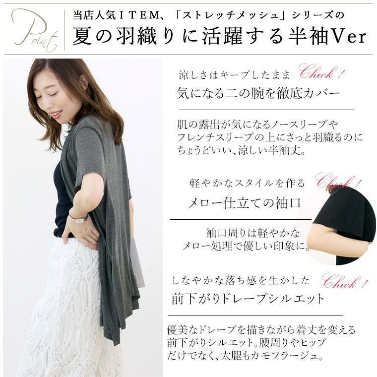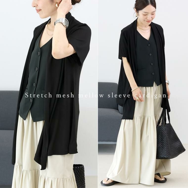 【UVカット】 ストレッチメッシュメロースリーブカーディガン