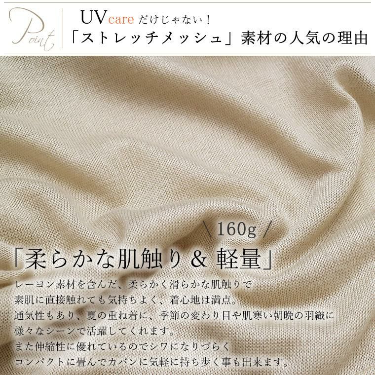 【UVカット】ストレッチメッシュメロースリーブカーディガン 【メール便可/ma1.5】