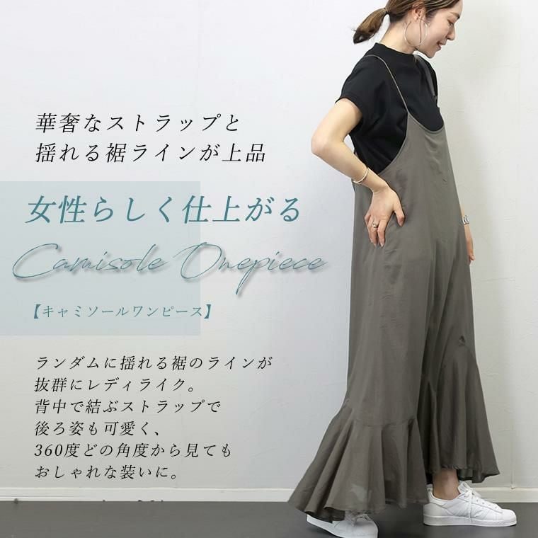 華奢なストラップと揺れる裾ラインで上品に仕上がるキャミソールワンピース