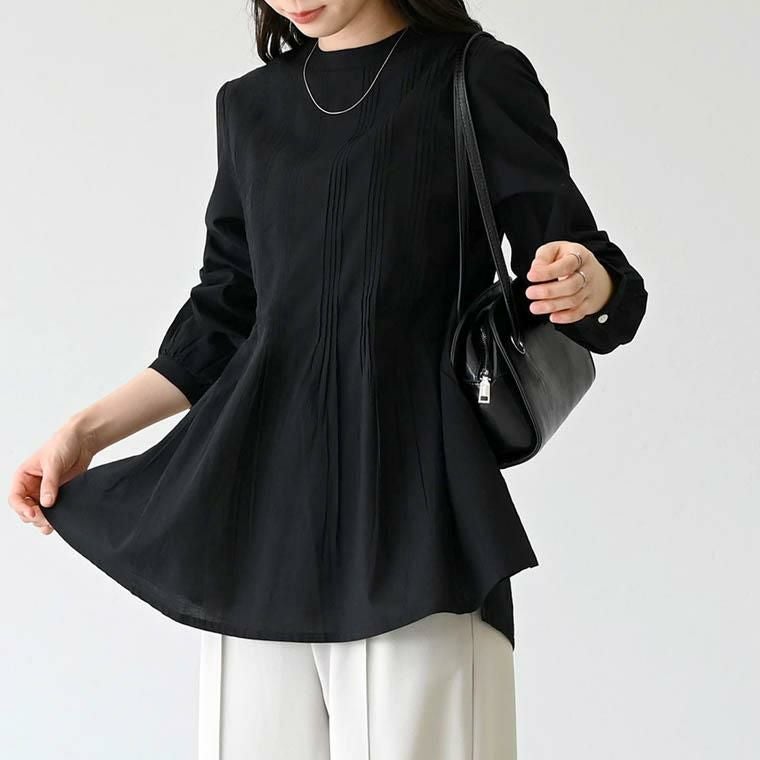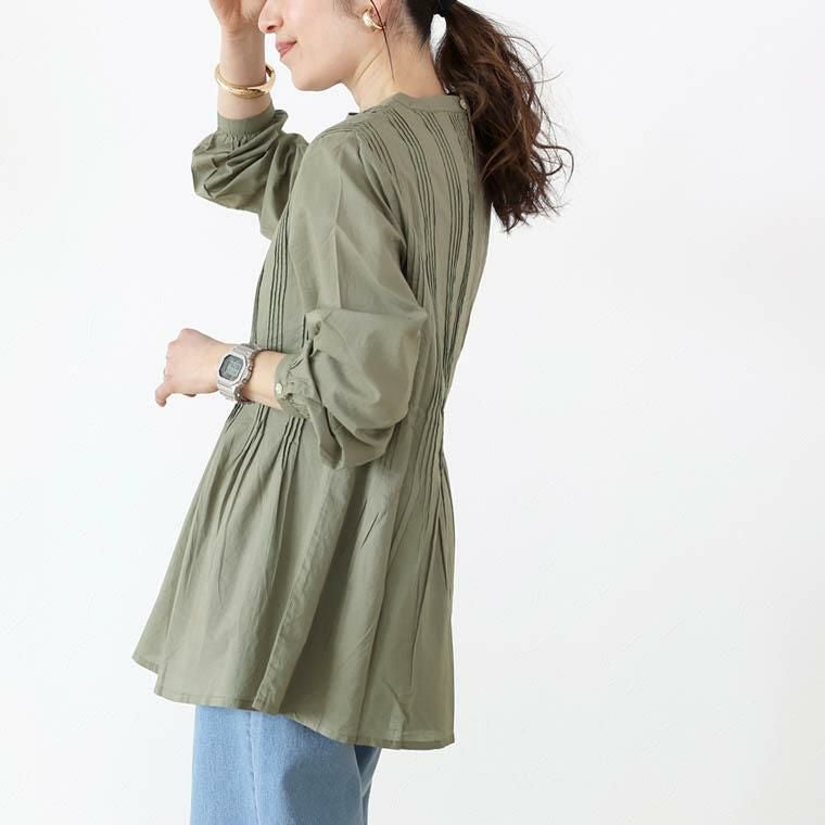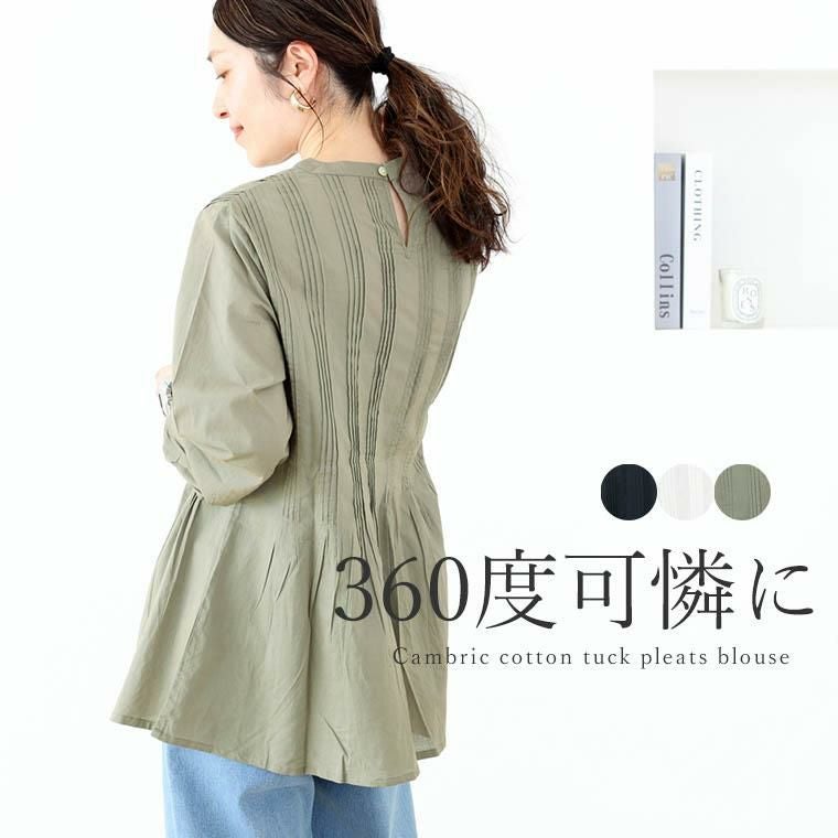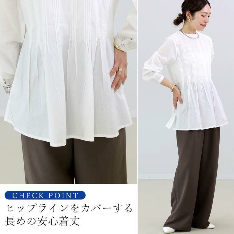 キャンブリックコットンタックプリーツブラウス