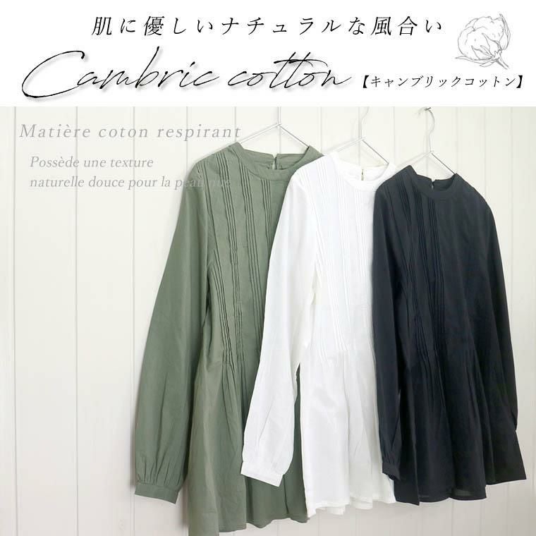 キャンブリックコットンタックプリーツブラウス 【メール便可/ma1.5】