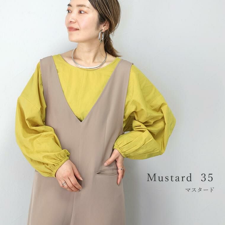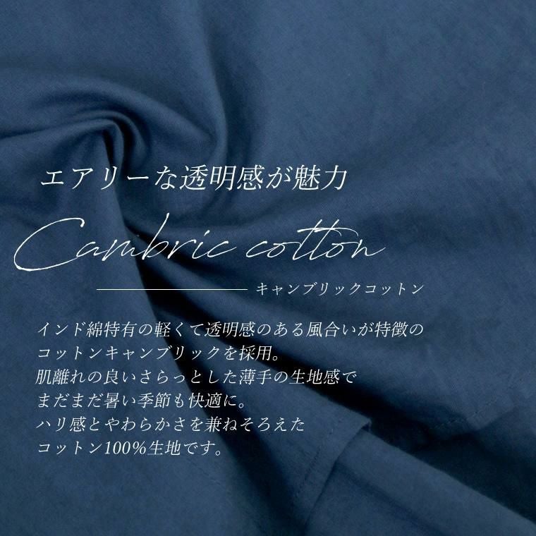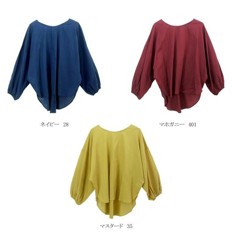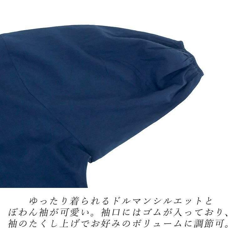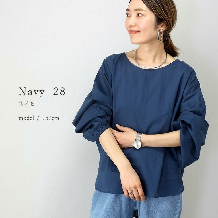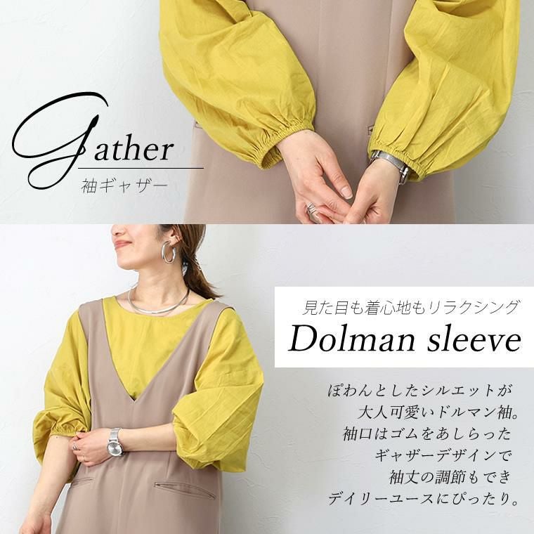 キャンブリックコットン袖ギャザードルマンブラウス さらりとしたコットンキャンブリック生地で仕立てたプルオンブラウス。 ストンとかぶりで着られる手軽さとゆったりとした余裕のあるシルエットが魅力です。 首元はシンプルなクルーネックで女性らしい印象に。すっきりとした身頃に対して ぽわんとしたボリューム袖が引き立ち華奢見せ効果も。ギャザーを あしらった袖口は袖丈の調節もしやすく、デイリーユースにもおすすめです。 着映え感のある色展開にも注目。大人の肌色を美しくみせるカラーリングにこだわりました。
