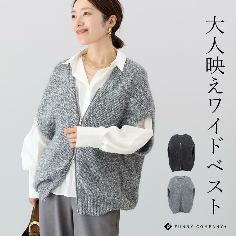 ベスト トップス 重ね着 レイヤード 羽織り フレンチ 華奢 着痩せ 透けない 伸縮 着やすい Vネック ダブルジップ シルバー デコルテ シンプル キレイ見え きれいめ キレイめ 綺麗め 上品 楽ちん イージー イージー素材 3.5ゲージ ローゲージ ざっくり ルーズ ゆるめ ゆったり ワイド コクーン 長め リラックス おしゃれ お洒落 体型カモフラージュ 大人め ブラック クロ 黒 黒色 グレージュ カーキグリーン カーキ 緑 スミクロ グレー 灰 メランジ 杢 カラバリ豊富 大きめ 大きい ワンマイルウエア ワンマイルウェア レディースファッション 無地 ラクチン らくちん 楽ちん 動きやすい プラスサイズ 着痩せ 華奢見え 脚長 脚長効果 ゆったりサイズ ゆる すっきり カバー 体型カバー きちんと シンプル カジュアル ナチュラル ベーシック オフィス オフィスカジュアル テレワーク 会議 食事会 ランチ 女友達 参観日 二次会 飲み会 上品 知的 女性らしい 女らしい 着映え オンライン飲み会 着回し 大人 大人カジュアル オトナ 女性 綺麗 きれい キレイ キレイめ 高見え 上質 大きいサイズ 細見え 女性服 アースカラー フリーサイズ 楽 ノンストレス 動きやすい ゆったり 高級感 母の日 プレゼント ギフト 贈り物 S M L LL 2L XL 20代 30代 40代 50代 おしゃれ パ―ト バイト 仕事 仕事用 ユニフォーム 春夏 春 夏 秋冬 秋 冬 お洒落 オシャレ かわいい 可愛い カワイイ かっこいい カッコいい FUNNY COMPANY ファニーカンパニー ふぁにーかんぱにー ファニカン