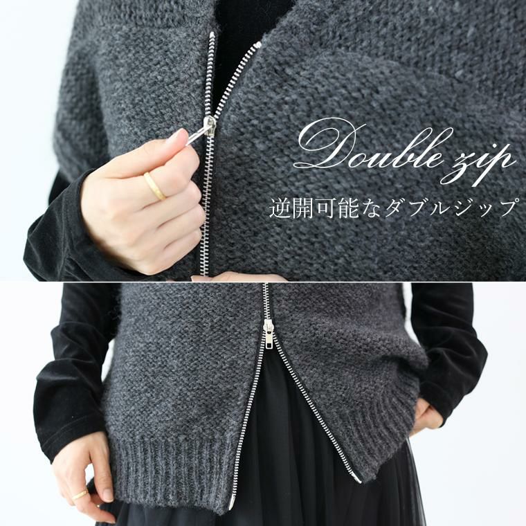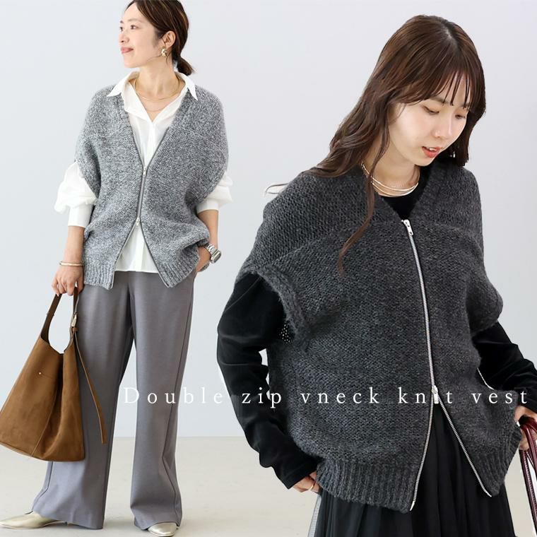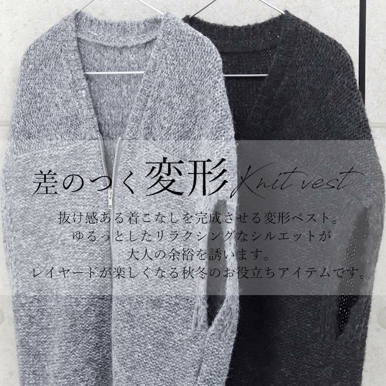 ダブルジップVネック変形ニットベスト 【メール便不可】