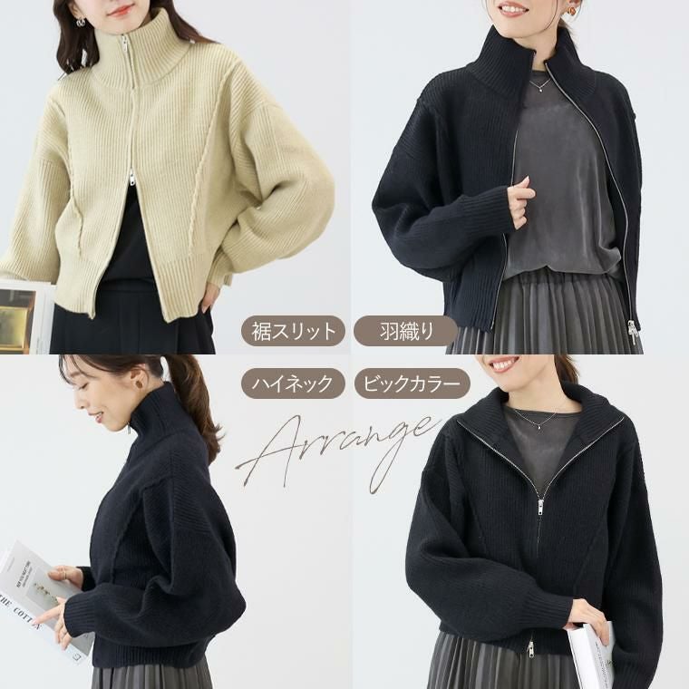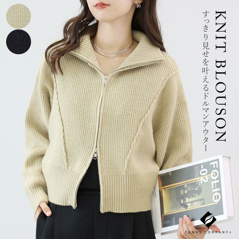 アウター ブルゾン ニットアウター ニットブルゾン プルオーバー ニット 7G ミドルゲージ 長袖 伸縮 着やすい ハイネック ビッグカラー ダブルジップ 伸縮 リンキング クロップド丈 ショート丈 シンプル キレイ見え きれいめ キレイめ 綺麗め 上品 楽ちん イージー イージー素材 ゆるめ PO ゆったり リラックス レイヤード 重ね着 おしゃれ お洒落 体型カモフラージュ 大人め ブラック ぶらっく 黒 くろ クロ ベージュ べーじゅ カラバリ豊富 大きめ 大きい ワンマイルウエア ワンマイルウェア レディースファッション 無地 ラクチン らくちん 楽ちん 動きやすい プラスサイズ 着痩せ 華奢見え 脚長 脚長効果 ゆったりサイズ ゆる すっきり カバー 体型カバー きちんと シンプル カジュアル ナチュラル ベーシック オフィス オフィスカジュアル テレワーク 会議 食事会 ランチ 女友達 参観日 二次会 飲み会 上品 知的 女性らしい 女らしい 着映え オンライン飲み会 着回し 大人 大人カジュアル オトナ 女性 綺麗 きれい キレイ キレイめ 高見え 上質 大きいサイズ 細見え 女性服 アースカラー フリーサイズ 楽 ノンストレス 動きやすい ゆったり 高級感 母の日 プレゼント ギフト 贈り物 S M L LL 2L XL 20代 30代 40代 50代 おしゃれ パ―ト バイト 仕事 仕事用 ユニフォーム 春夏 春 夏 秋冬 秋 冬 お洒落 オシャレ かわいい 可愛い カワイイ かっこいい カッコいい FUNNY COMPANY ファニーカンパニー ふぁにーかんぱにー ファニカン
