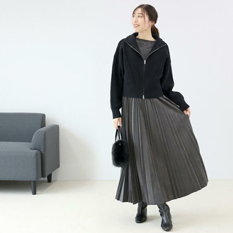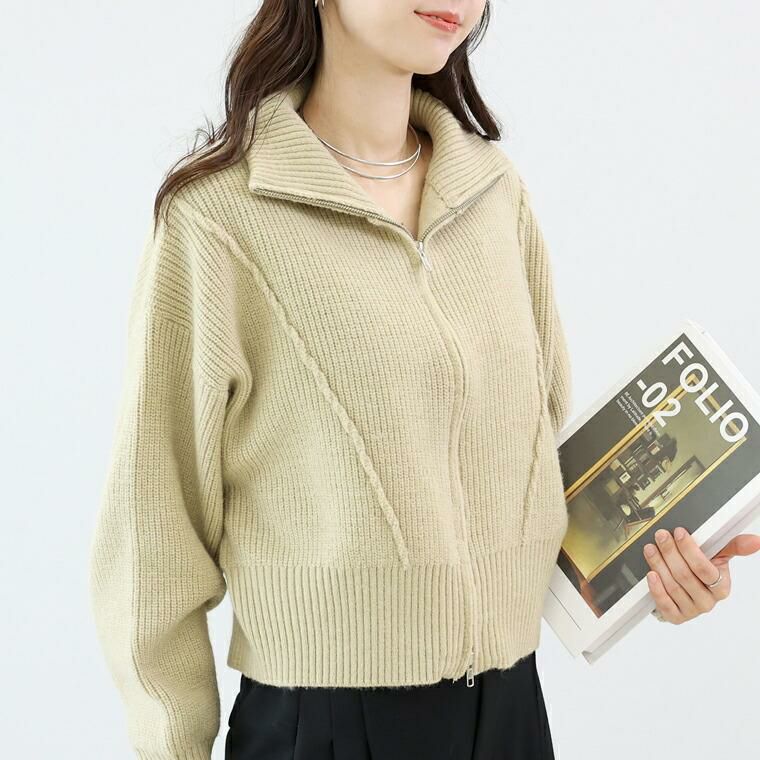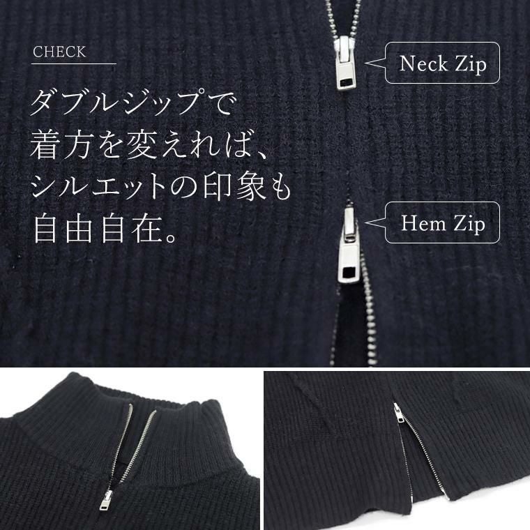 片畦編みハイネックダブルジップブルゾン 【メール便不可】