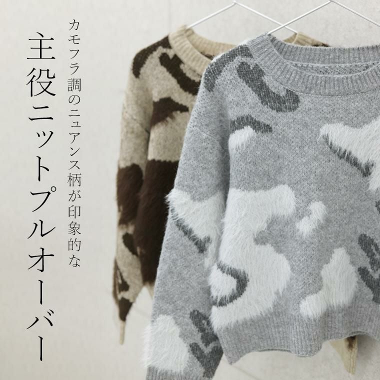 プルオーバー ニット ニットカーデ ニュアンス柄 カモフラージュ柄 カモフラ柄 総柄 長袖 伸縮 着やすい クルーネック ラウンドネック ジャスト丈 ドロップショルダー 伸縮 シンプル キレイ見え きれいめ キレイめ 綺麗め 上品 楽ちん イージー イージー素材 ゆるめ PO ゆったり リラックス おしゃれ お洒落 体型カモフラージュ 大人め グレー ぐれー 灰色 メランジグレー ベージュ べーじゅ ちゃ チャ カラバリ豊富 大きめ 大きい ワンマイルウエア ワンマイルウェア レディースファッション 無地 ラクチン らくちん 楽ちん 動きやすい プラスサイズ 着痩せ 華奢見え 脚長 脚長効果 ゆったりサイズ ゆる すっきり カバー 体型カバー きちんと シンプル カジュアル ナチュラル ベーシック オフィス オフィスカジュアル テレワーク 会議 食事会 ランチ 女友達 参観日 二次会 飲み会 上品 知的 女性らしい 女らしい 着映え オンライン飲み会 着回し 大人 大人カジュアル オトナ 女性 綺麗 きれい キレイ キレイめ 高見え 上質 大きいサイズ 細見え 女性服 アースカラー フリーサイズ 楽 ノンストレス 動きやすい ゆったり 高級感 母の日 プレゼント ギフト 贈り物 S M L LL 2L XL 20代 30代 40代 50代 おしゃれ パ―ト バイト 仕事 仕事用 ユニフォーム 春夏 春 夏 秋冬 秋 冬 お洒落 オシャレ かわいい 可愛い カワイイ かっこいい カッコいい FUNNY COMPANY ファニーカンパニー ふぁにーかんぱにー ファニカン