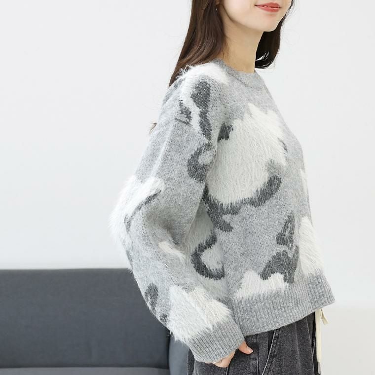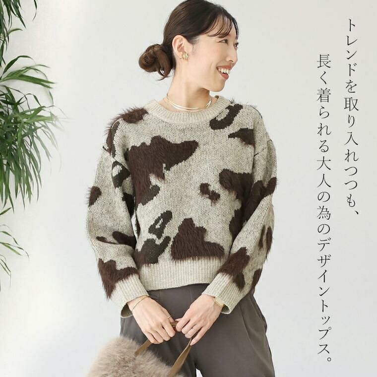 【ニュアンス柄が印象的なニットプルオーバー】