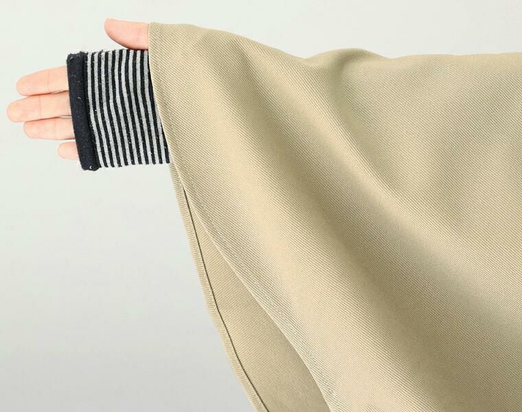 着丈はヒップから15cm下。袖丈は手首から13cm下。着丈はヒップをしっかり隠してくれます。伸縮性はありませんが全体的にゆったりしているので楽な着心地です。袖幅も身幅もゆったりしていて窮屈感はありません。