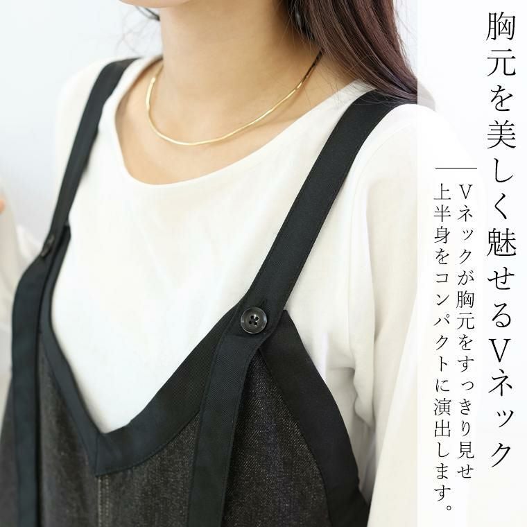 シンプルなインナーに合わせるだけで、即おしゃれが決まるデニムサロペット。12オンスの程よい厚みを持つデニム素材を使用し、大人がきれいに着こなせる上品な風合いです。ストレートシルエットが脚のラインを拾いにくく、縦にすっと伸びる美しいバランスを演出。Vネックが胸元をすっきり見せ、上半身をコンパクトに見せてくれます。共布パイピングを施したストラップはボタンで3段階調節が可能。バックファスナー付きで着脱もスムーズに行えます。裏地なしでも透けにくく、軽やかな着心地で、季節を越えて活躍する一枚です。