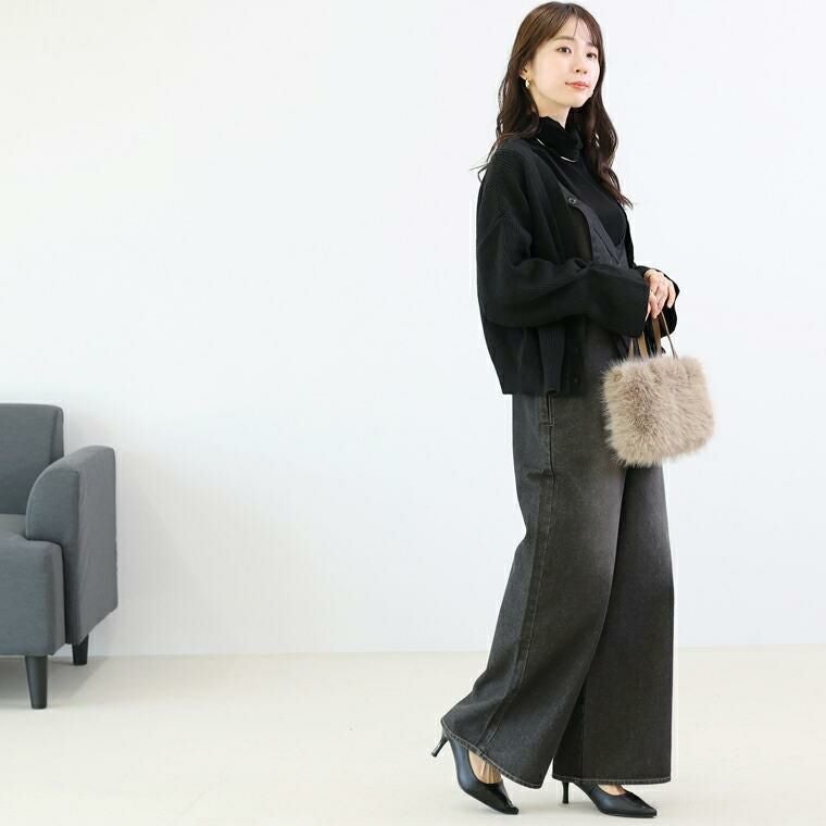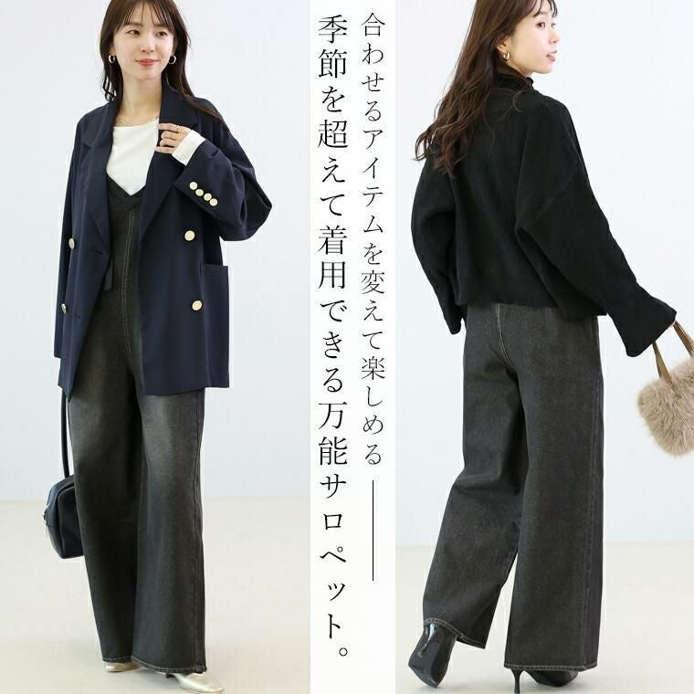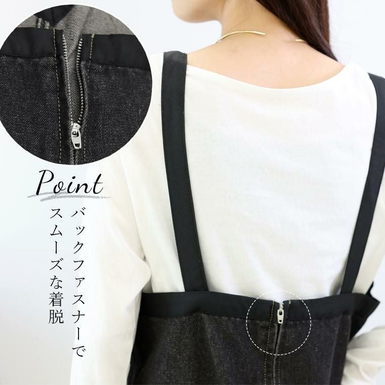 【バックファスナーで着脱スムーズ きれい見えデニムサロペット】