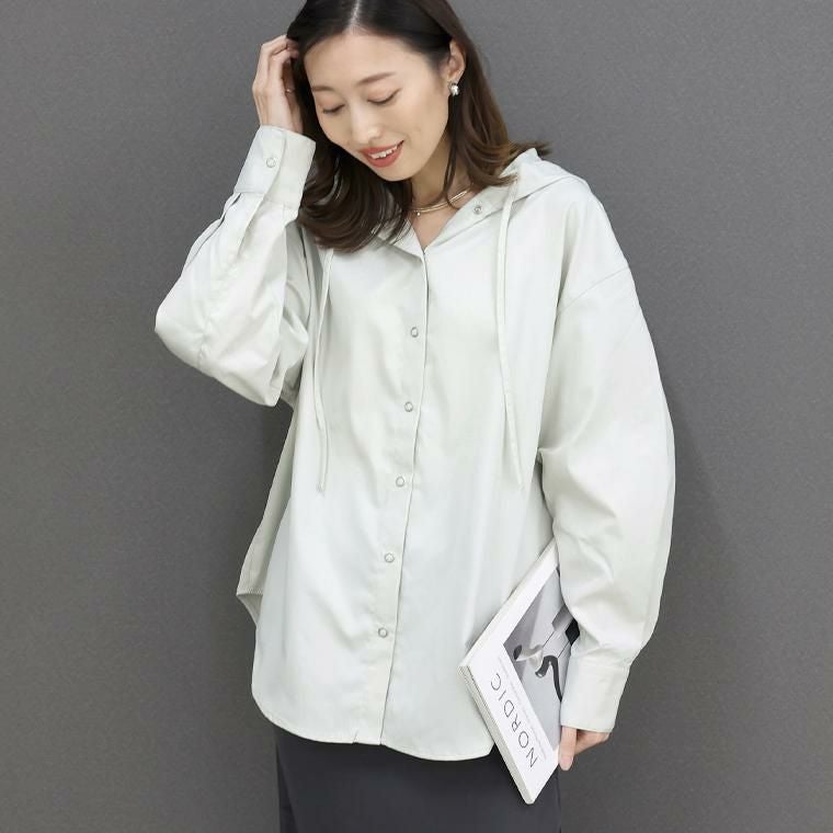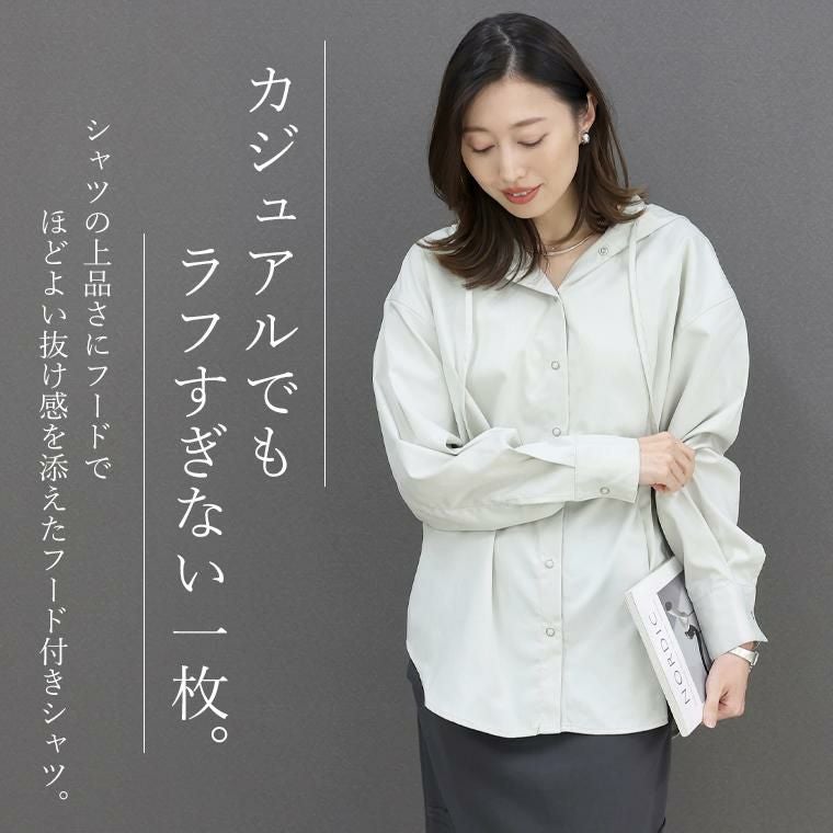 【シャツの上品さにフードでほどよい抜け感を添えた大人シャツ】