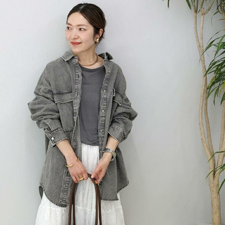 さっと羽織れて、きちんと整う。大人の毎日にちょうどいい、春のデニムチュニック。薄すぎずもたつきづらい8ozのデニム生地。綿にポリエステルとレーヨンを織り込むことで軽やかで落ち感のある、大人の装いに似合う風合いです。春の装いに欠かせないデニム素材で、季節感のある着こなしが即完成。ベーシックなシルエットだからこそ、長く愛用できる安心感をディテールまでしっかり詰め込んだデザイン。太ももまでしっかり隠れるチュニック丈で、気になる腰回り・ヒップラインを自然にカバー。1枚で着ても、インナーとしても、羽織としても使える高い着回し力が魅力。レギュラーカラーできちんと感があり、カジュアルすぎず大人の印象。パンツ・スカート問わず合わせやすく、春のワードローブに頼れる一枚。