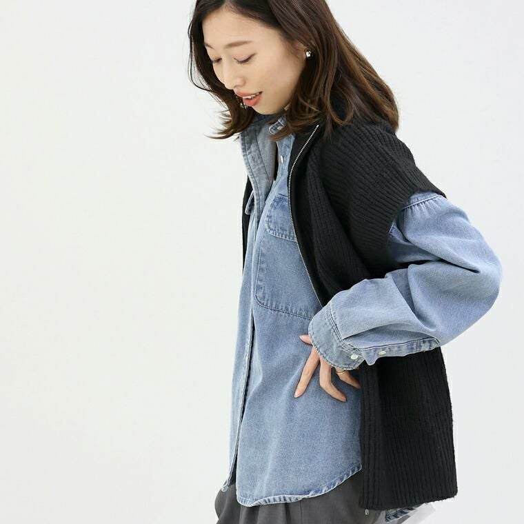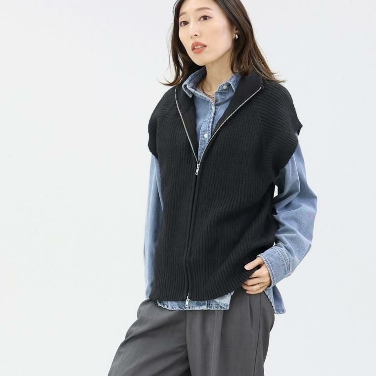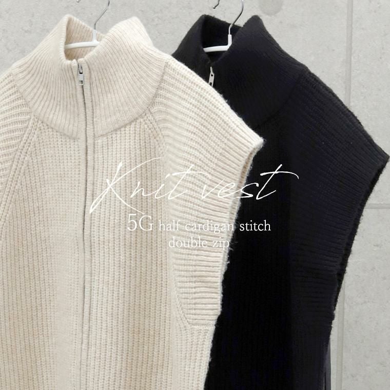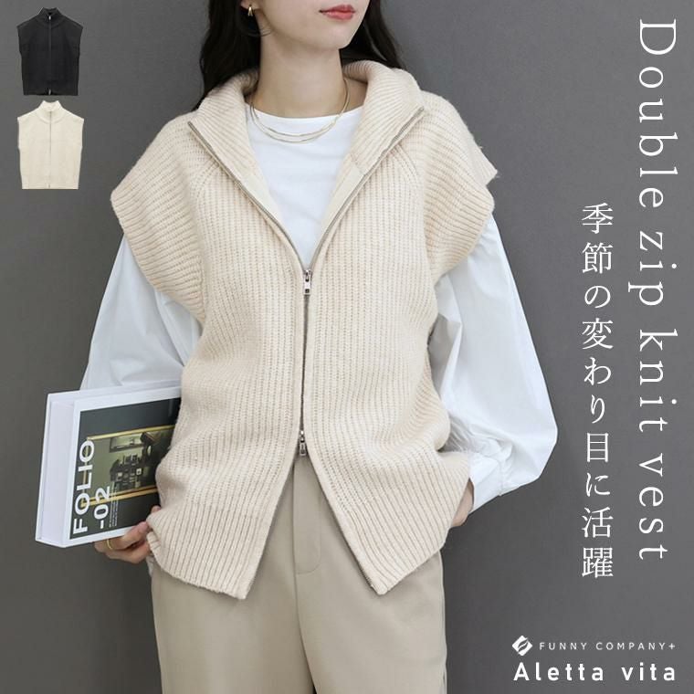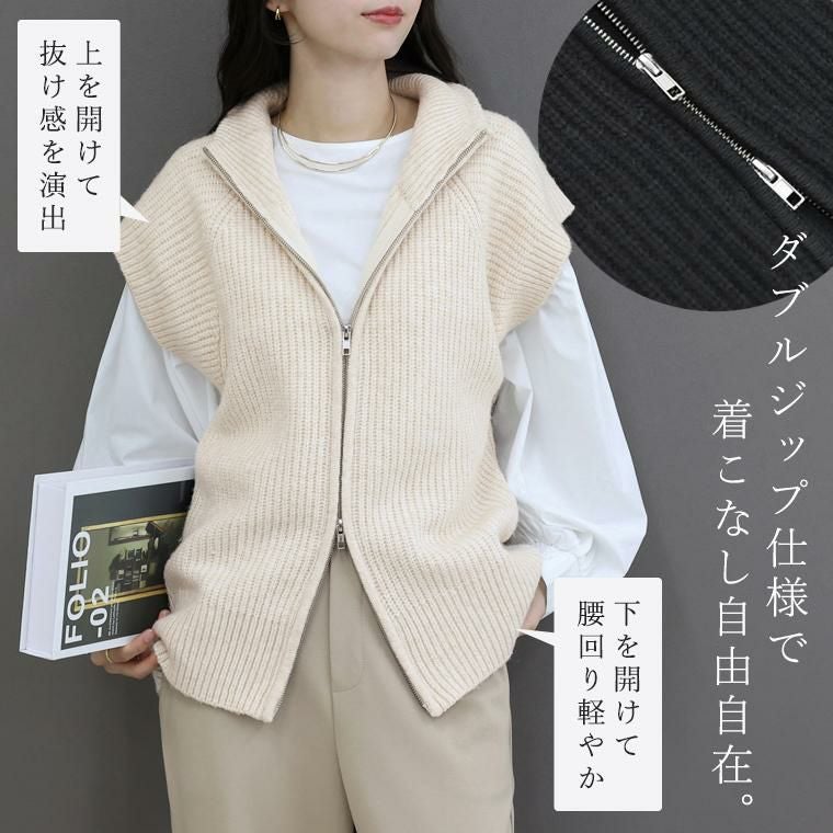 片畦編みダブルジップニットベスト 【メール便不可】