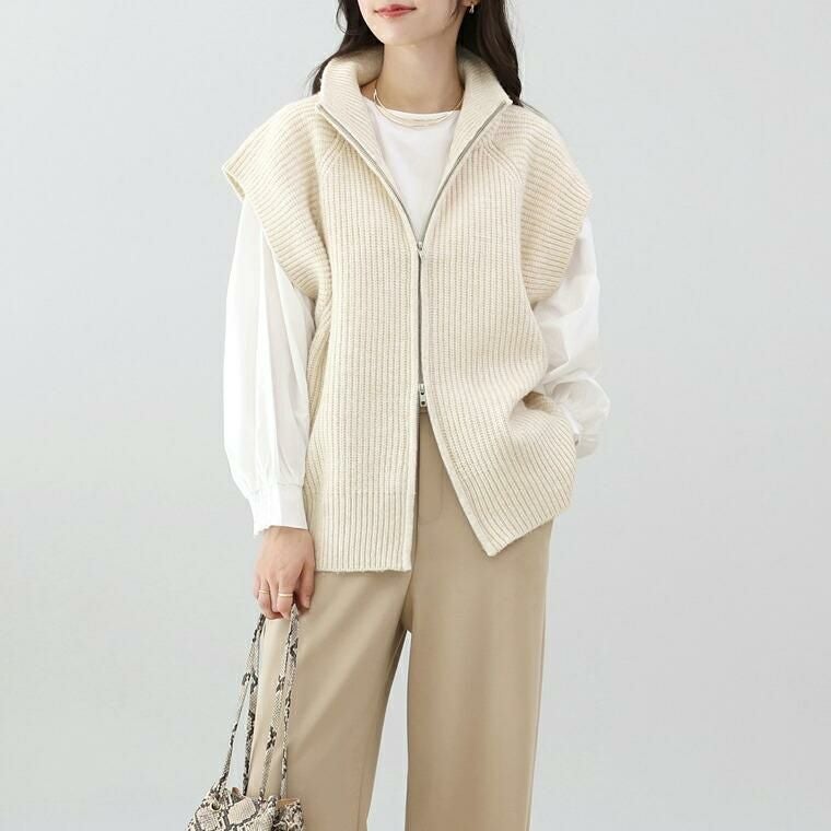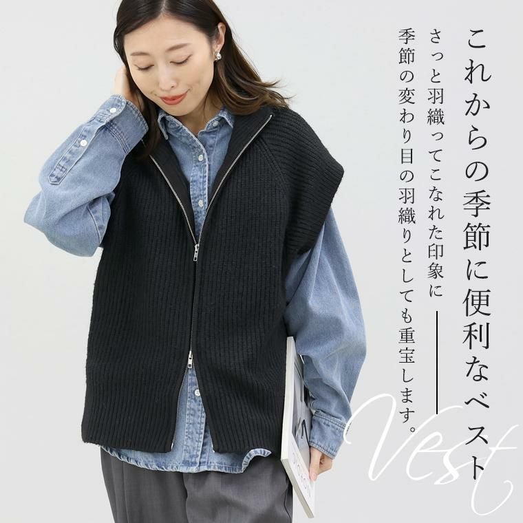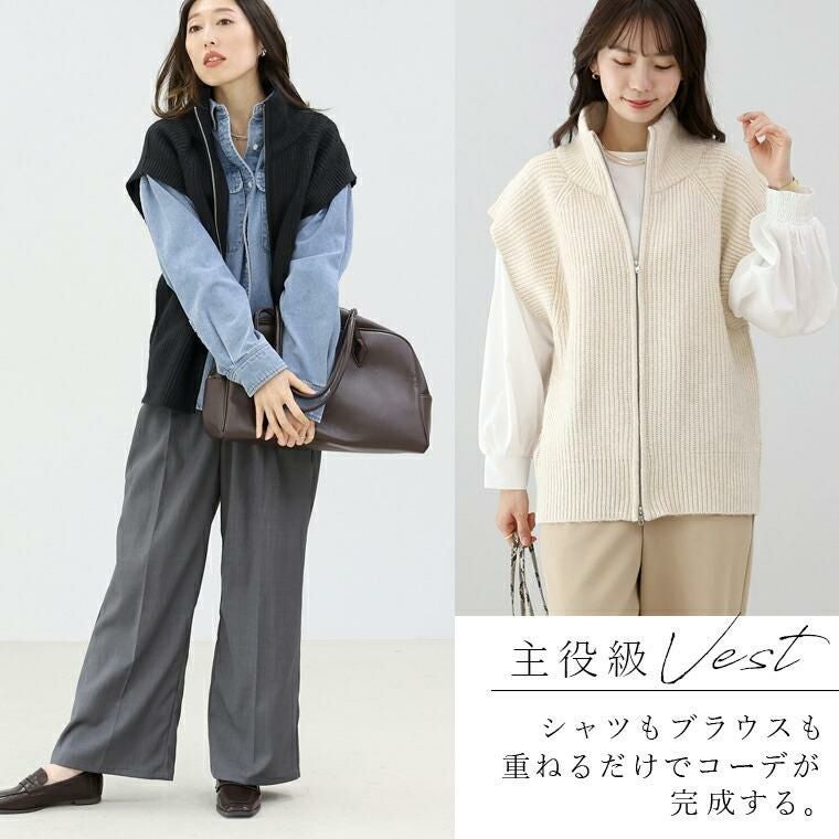 ベスト ニット ニットベスト ジレ 羽織り 羽織 はおり はお 前開き 5G ローゲージ ノースリーブ 伸縮 着やすい ハイネック ビッグカラー ジップ ダブルジップ 伸縮 シンプル 体型カバー 畔編み 片畔編み ラグラン 小顔 重ね着 防寒 温度調節 レイヤード リブ ゆったり 通勤 ロングシーズン きれいめ キレイめ 綺麗め 上品 おしゃれ お洒落 大人め ブラック 黒 ライトベージュ カラバリ豊富 大きめ 大きい ワンマイルウエア ワンマイルウェア レディースファッション 無地 ラクチン らくちん 楽ちん 動きやすい プラスサイズ 着痩せ 華奢見え 脚長 脚長効果 ゆったりサイズ ゆる すっきり カバー 体型カバー きちんと シンプル カジュアル ナチュラル ベーシック オフィス オフィスカジュアル テレワーク リモートワーク リモート 会議 食事会 ランチ 女友達 参観日 二次会 飲み会 上品 知的 女性らしい 女らしい 着映え オンライン飲み会 着回し 大人 大人カジュアル オトナ 女性 綺麗 きれい キレイ キレイめ 高見え 上質 上品 大きめ 大きい 大きいサイズ 体型カバー 華奢見え 着痩せ 細見え 着回し 大人 大人カジュアル オトナ 女性 綺麗 女性 女性服 アースカラー フリーサイズ レディースファッション ラクチン 楽 らくちん 楽ちん ノンストレス 動きやすい プラスサイズ 着回し プラスサイズ ゆったり ゆったりサイズ ゆる すっきり シンプル 無地 きれい キレイ きれいめ キレイめ 高見え 上質 高級感 母の日 プレゼント ギフト 贈り物 S M L LL 2L XL 20代 30代 40代 50代 おしゃれ パ―ト バイト 仕事 仕事用 ユニフォーム 春夏 春 夏 秋冬 秋 冬 お洒落 オシャレ かわいい 可愛い カワイイ かっこいい カッコいい FUNNY COMPANY ファニーカンパニー ふぁにーかんぱにー ファニカン