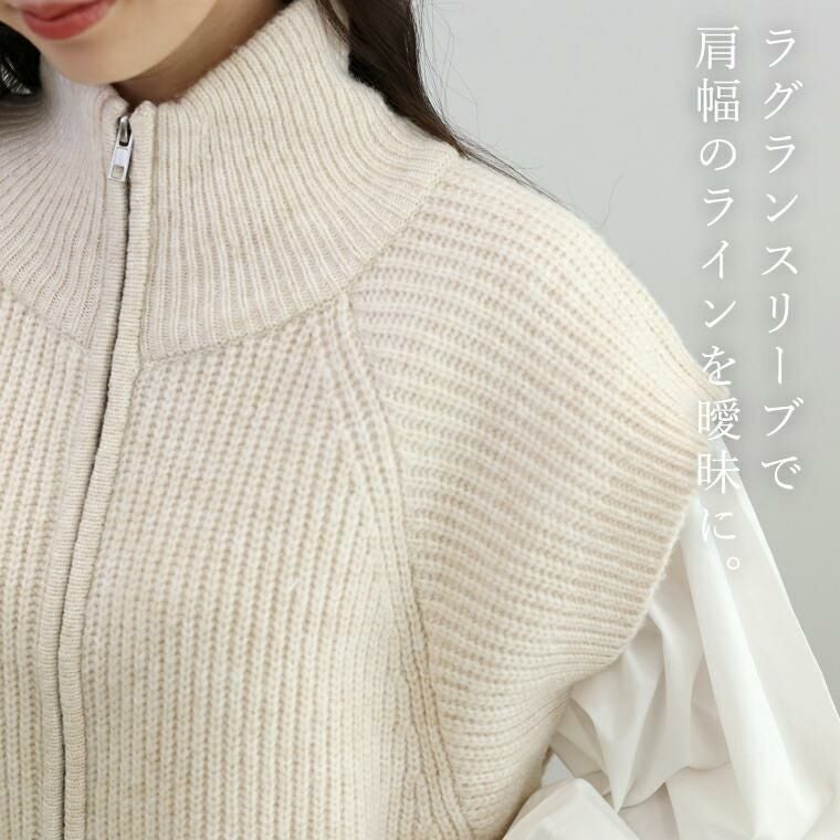 5G片畦編みならではの立体感が、身体のラインを拾わず自然にカバーするダブルジップニットベスト。畦の凹凸がストライプのように縦ラインを強調し、着るだけですっきりとした印象へ導きます。ダブルジップ仕様で、上を開けて抜け感を、下を開けて腰まわりを軽やかにと、アレンジも自在。ハイネックと襟リブのデザインで顔まわりの表情も変化させられ、ラグランスリーブが肩幅をやさしくカバーします。シャツやブラウス、ワンピースに重ねるだけでコーデが完成する、秋から春まで頼れる一枚です。