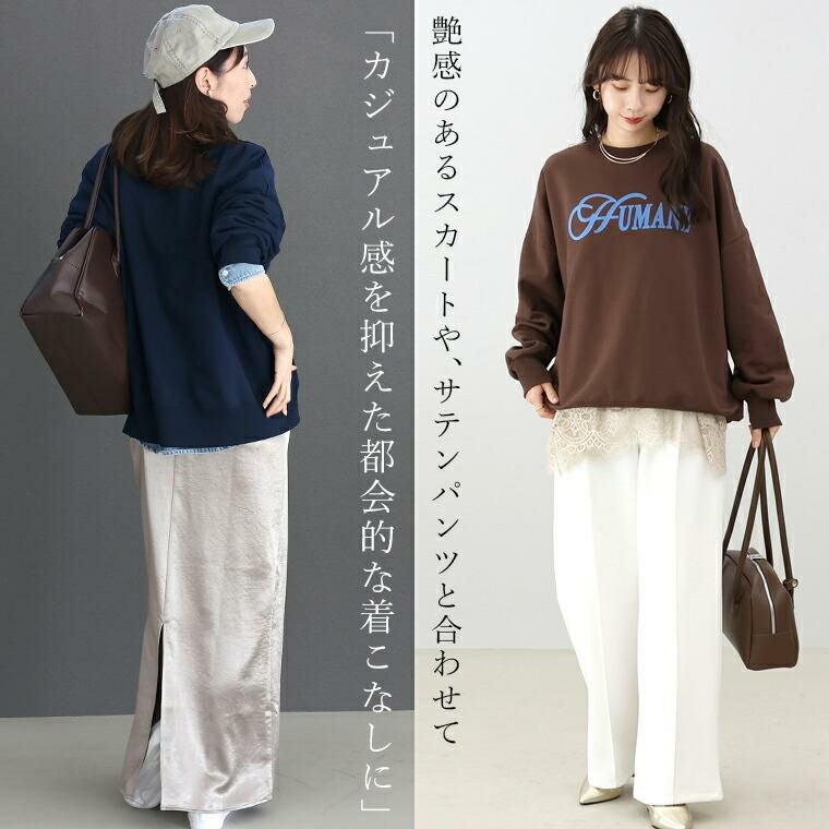 トップス プルオーバー スウェット リブ ロゴ ロゴスウェット 体型カバー レイヤード レースレイヤード レイヤードコーデ レイヤードスタイル シアーレイヤード フェミニンレイヤード 裏毛 ドロップショルダー フロッキーロゴ フロッキー イージーケア キレイ見え きれいめ キレイめ 綺麗め 上品 おしゃれ お洒落 大人め ネイビー 紺 ダークブラウン 茶 カラバリ豊富 大きめ 大きい ワンマイルウエア ワンマイルウェア レディースファッション 無地 ラクチン らくちん 楽ちん 動きやすい プラスサイズ 着痩せ 華奢見え 脚長 脚長効果 ゆったりサイズ ゆる すっきり カバー 体型カバー きちんと シンプル カジュアル ナチュラル ベーシック オフィス オフィスカジュアル テレワーク リモートワーク リモート 会議 食事会 ランチ 女友達 参観日 二次会 飲み会 上品 知的 女性らしい 女らしい 着映え オンライン飲み会 着回し 大人 大人カジュアル オトナ 女性 綺麗 きれい キレイ キレイめ 高見え 上質 上品 大きめ 大きい 大きいサイズ 体型カバー 華奢見え 着痩せ 細見え 着回し 大人 大人カジュアル オトナ 女性 綺麗 女性 女性服 アースカラー フリーサイズ レディースファッション ラクチン 楽 らくちん 楽ちん ノンストレス 動きやすい プラスサイズ 着回し プラスサイズ ゆったり ゆったりサイズ ゆる すっきり シンプル 無地 きれい キレイ きれいめ キレイめ 高見え 上質 高級感 母の日 プレゼント ギフト 贈り物 S M L LL 2L XL 20代 30代 40代 50代 おしゃれ パ―ト バイト 仕事 仕事用 ユニフォーム 春夏 春 夏 秋冬 秋 冬 お洒落 オシャレ かわいい 可愛い カワイイ かっこいい カッコいい FUNNY COMPANY ファニーカンパニー ふぁにーかんぱにー ファニカン