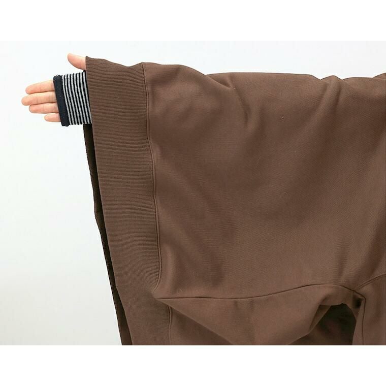 着丈はヒップが3分の2隠れるくらい。袖丈は手首から8cm下。かなりゆったりしていて少し大きめに感じました。厚手のものを中に重ねても窮屈なく着れそうです。体のラインを拾わず体型カバー◎。