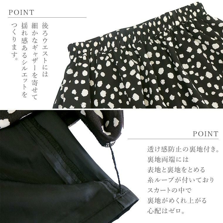 スカート 柄スカート 柄 スカート プリントスカート プリント ロングスカート フレアスカート 揺れる 揺れスカート Aラインエーライン エレガント 華やぎ 柄プリント モノトーン ダルメシアン アニマル アニマルプリント ドット 白黒 アイボリー オフホワイト ブラック 黒 裏地 年中 軽やか カジュアル アクセント シワにならない アイロン不要 アイロン要らず 洗濯 楽 フリーサイズ きちんと感 とろみ とろみ素材 落ち感 ハリ ハリ感 イージーケア ロング キレイ見え きれいめ キレイめ 綺麗め 上品 楽ちん イージー イージー素材 ルーズ ゆるめ 抜け感 ストレスフリー スタイルアップ すらり スラリ ラインカバー 体型カバー 長い 長め ナチュラル 綺麗色 きれい色 差し色 ブロガー アフェリエイト アクセント ベーシック 人気 定番 カラバリ豊富 大きめ 大きい ワンマイルウエア ワンマイルウェア レディースファッション 無地 ラクチン らくちん 楽ちん 動きやすい プラスサイズ 着痩せ 華奢見え ゆったりサイズ ゆる すっきり カバー 体型カバー きちんと シンプル カジュアル ナチュラル ベーシック オフィス オフィスカジュアル テレワーク リモートワーク リモート 会議 食事会 ランチ 女友達 参観日 二次会 飲み会 上品 知的 女性らしい 女らしい 着映え オンライン飲み会 着回し 大人 大人カジュアル オトナ 女性 綺麗 きれい キレイ キレイめ 高見え 上質 上品 大きめ 大きい 大きいサイズ 体型カバー 華奢見え 着痩せ 細見え 着回し 大人 大人カジュアル オトナ 女性 綺麗 女性 女性服 アースカラー フリーサイズ レディースファッション ラクチン 楽 らくちん 楽ちん ノンストレス 動きやすい プラスサイズ 着回し プラスサイズ ゆったり ゆったりサイズ ゆる すっきり シンプル 無地 きれい キレイ きれいめ キレイめ 高見え 上質 高級感 母の日 プレゼント ギフト 贈り物 S M L LL 2L XL 20代 30代 40代 50代 おしゃれ パ―ト バイト 仕事 仕事用 ユニフォーム 春夏 春 夏 秋冬 秋 冬 お洒落 オシャレ かわいい 可愛い カワイイ かっこいい カッコいい FUNNY COMPANY ファニーカンパニー ふぁにーかんぱにー ファニカン