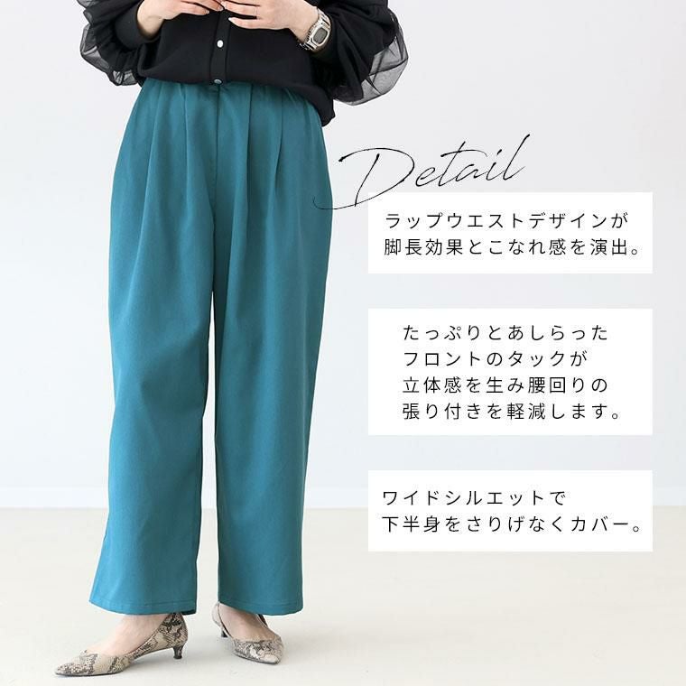 ボトムス パンツ ワイド フロントタック ウエストゴム きれいめ キレイめ 綺麗め 上品 おしゃれ お洒落 大人め ネイビー ティール グレージュ カラバリ豊富 大きめ 大きい ワンマイルウエア ワンマイルウェア レディースファッション 無地 ラクチン らくちん 楽ちん 動きやすい プラスサイズ 着痩せ 華奢見え 脚長 脚長効果 ゆったりサイズ ゆる すっきり カバー 体型カバー きちんと シンプル カジュアル ナチュラル ベーシック オフィス オフィスカジュアル テレワーク リモートワーク リモート 会議 食事会 ランチ 女友達 参観日 二次会 飲み会 上品 知的 女性らしい 女らしい 着映え オンライン飲み会 着回し 大人 大人カジュアル オトナ 女性 綺麗 きれい キレイ キレイめ 高見え 上質 上品 大きめ 大きい 大きいサイズ 体型カバー 華奢見え 着痩せ 細見え 着回し 大人 大人カジュアル オトナ 女性 綺麗 女性 女性服 アースカラー フリーサイズ レディースファッション ラクチン 楽 らくちん 楽ちん ノンストレス 動きやすい プラスサイズ 着回し プラスサイズ ゆったり ゆったりサイズ ゆる すっきり シンプル 無地 きれい キレイ きれいめ キレイめ 高見え 上質 高級感 母の日 プレゼント ギフト 贈り物 S M L LL 2L XL 20代 30代 40代 50代 おしゃれ パ―ト バイト 仕事 仕事用 ユニフォーム 春夏 春 夏 秋冬 秋 冬 お洒落 オシャレ かわいい 可愛い カワイイ かっこいい カッコいい FUNNY COMPANY ファニーカンパニー ふぁにーかんぱにー ファニカン