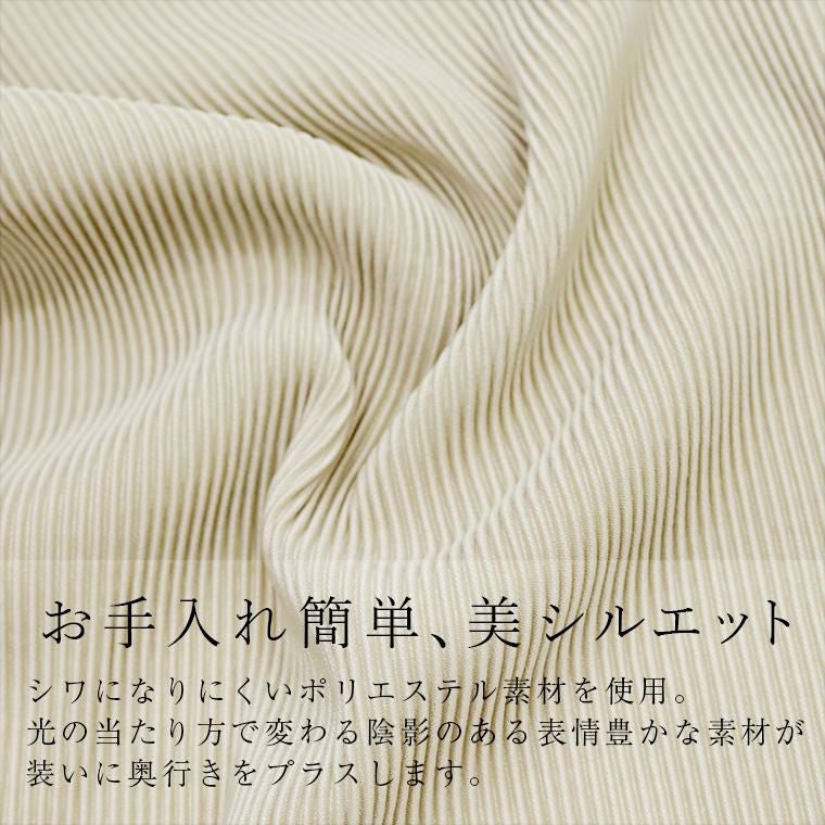 縦ラインを強調するIラインシルエットで、体型をすっきりカバーしてくれるプリーツ加工ナロースカート。凹凸感のある表情豊かな生地が、自然な着痩せ効果と奥行きのあるスタイルを演出します。光の当たり方で陰影が変わる素材感は、大人のコーデに洗練された印象をプラス。ウエストは総ゴム仕様で、ラクな着心地と脱ぎ穿きのしやすさを両立。さらに膝まで裏地付きで透け感を気にせず安心です。Tシャツにもブラウスにも相性抜群で、オフィスにも休日のお出かけにも活躍。動きやすくデイリーに使えながらも、上品な雰囲気を保てる万能アイテムです。程よくトレンドを取り入れつつ、長く愛用できる大人のための一枚です。