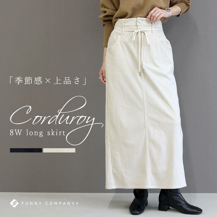 ボトムス スカート ロングスカート コーデュロイ 8W Iライン ロング丈 後ろゴム きれいめ キレイめ 綺麗め 上品 おしゃれ お洒落 大人め ブラック 黒 くろ オフベージュ 白 しろ カラバリ豊富 大きめ 大きい ワンマイルウエア ワンマイルウェア レディースファッション 無地 ラクチン らくちん 楽ちん 動きやすい プラスサイズ 着痩せ 華奢見え 脚長 脚長効果 ゆったりサイズ ゆる すっきり カバー 体型カバー きちんと シンプル カジュアル ナチュラル ベーシック オフィス オフィスカジュアル テレワーク リモートワーク リモート 会議 食事会 ランチ 女友達 参観日 二次会 飲み会 上品 知的 女性らしい 女らしい 着映え オンライン飲み会 着回し 大人 大人カジュアル オトナ 女性 綺麗 きれい キレイ キレイめ 高見え 上質 上品 大きめ 大きい 大きいサイズ 体型カバー 華奢見え 着痩せ 細見え 着回し 大人 大人カジュアル オトナ 女性 綺麗 女性 女性服 アースカラー フリーサイズ レディースファッション ラクチン 楽 らくちん 楽ちん ノンストレス 動きやすい プラスサイズ 着回し プラスサイズ ゆったり ゆったりサイズ ゆる すっきり シンプル 無地 きれい キレイ きれいめ キレイめ 高見え 上質 高級感 母の日 プレゼント ギフト 贈り物 S M L LL 2L XL 20代 30代 40代 50代 おしゃれ パ―ト バイト 仕事 仕事用 ユニフォーム 春夏 春 夏 秋冬 秋 冬 お洒落 オシャレ かわいい 可愛い カワイイ かっこいい カッコいい FUNNY COMPANY ファニーカンパニー ふぁにーかんぱにー ファニカン